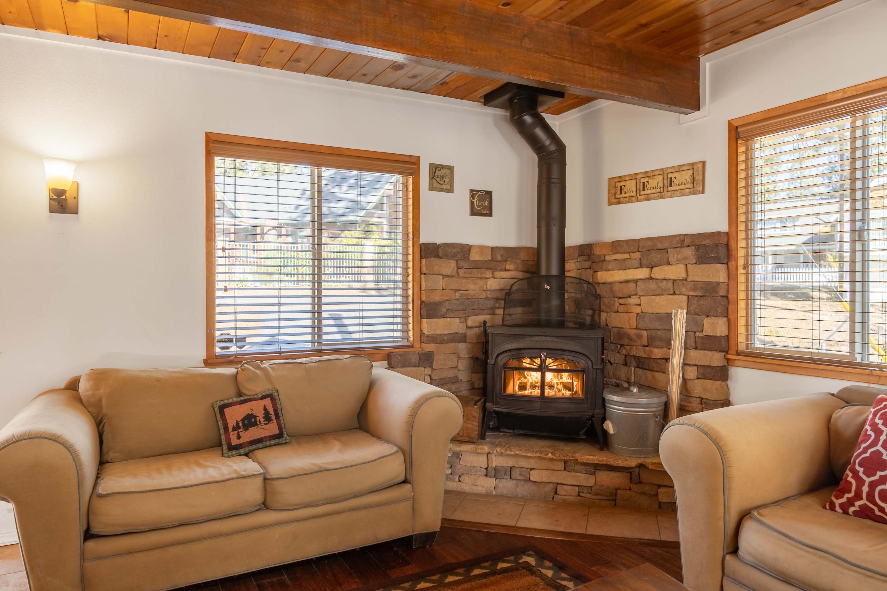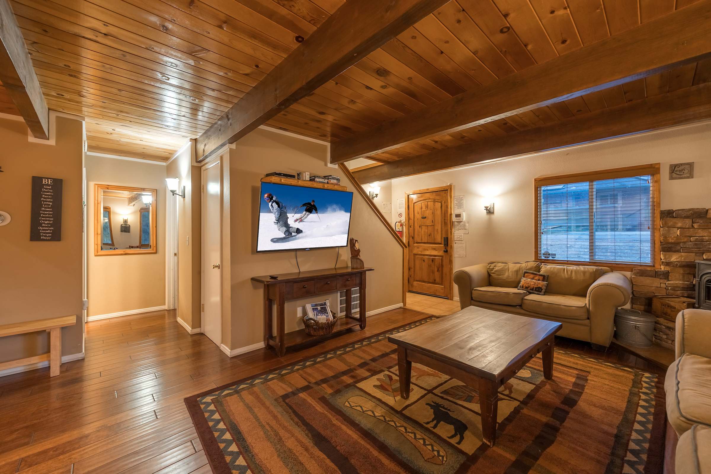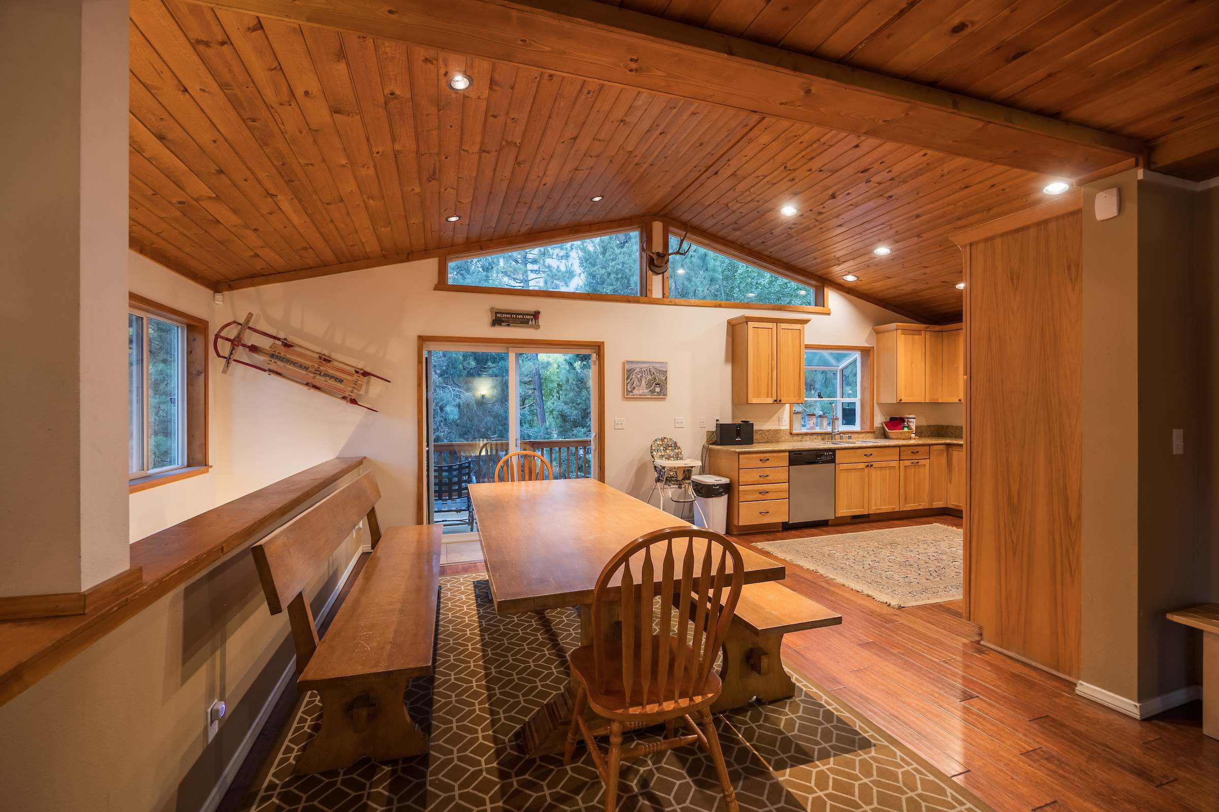 Cozy up at this spacious Big Bear retreat! 3 bedrooms, 3 baths, wood floors, a fireplace, full cook’s kitchen, game room, and fast Wi-Fi. Relax on the deck, soak in the hot tub, grill under the pines, and enjoy a fully fenced backyard. Steps to Meadow Park and the lake, and minutes to the Village, Snow Summit, and hiking—your ideal mountain escape!