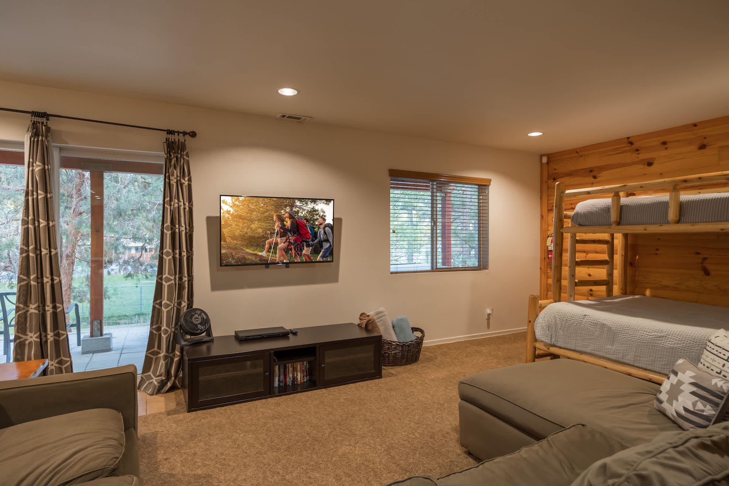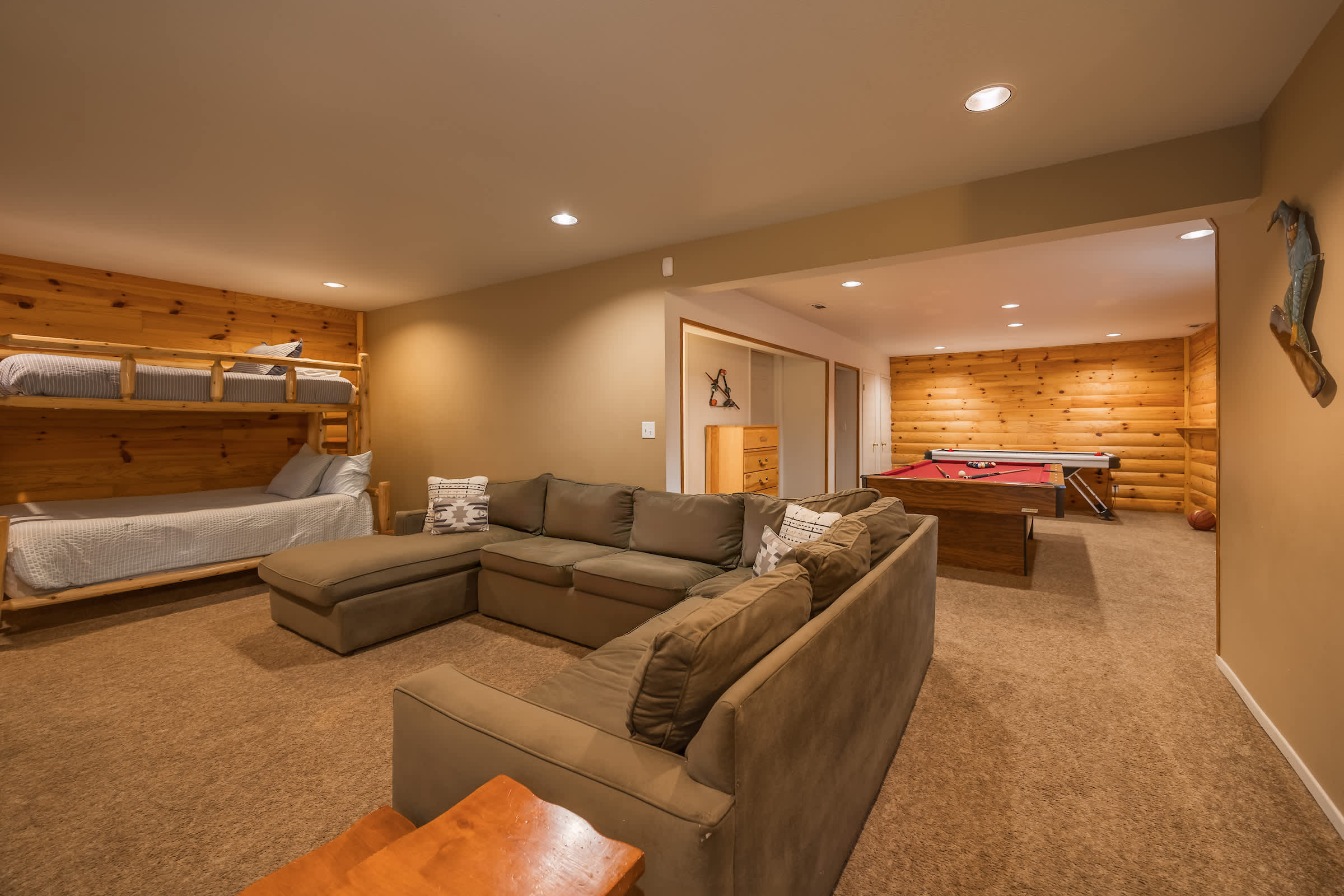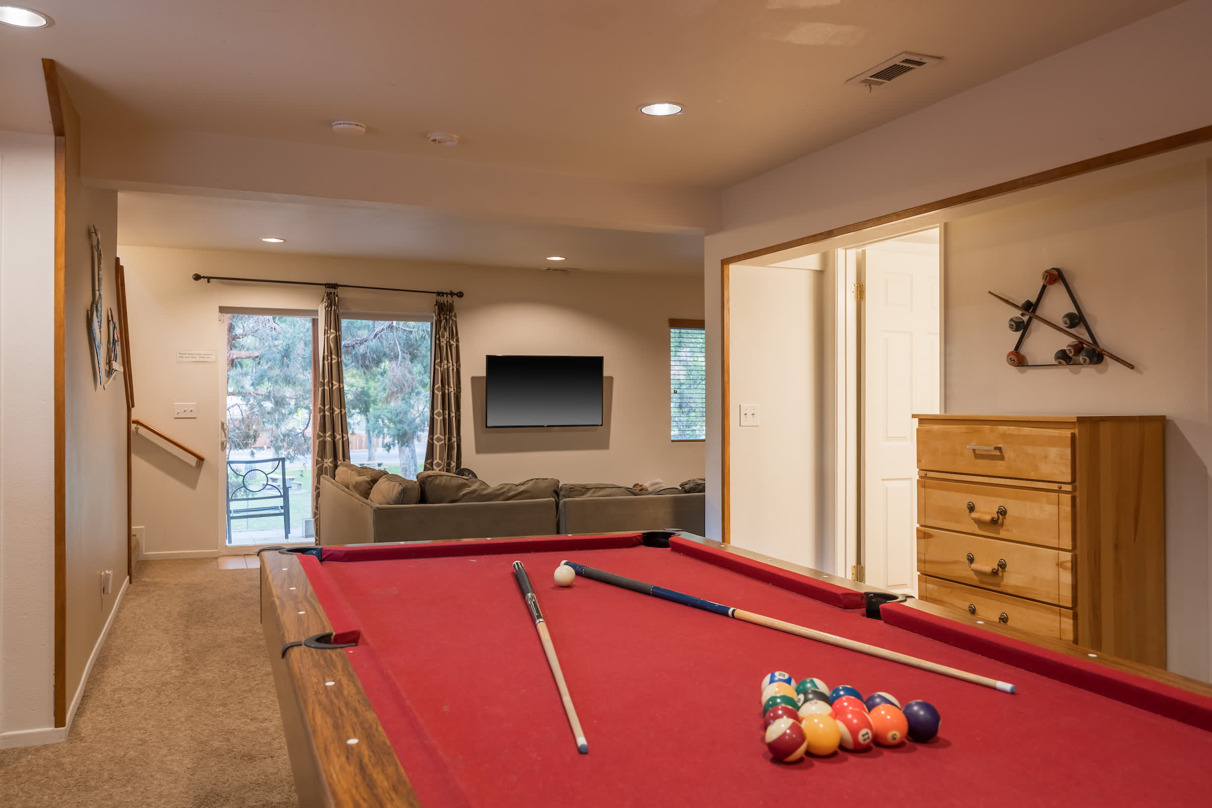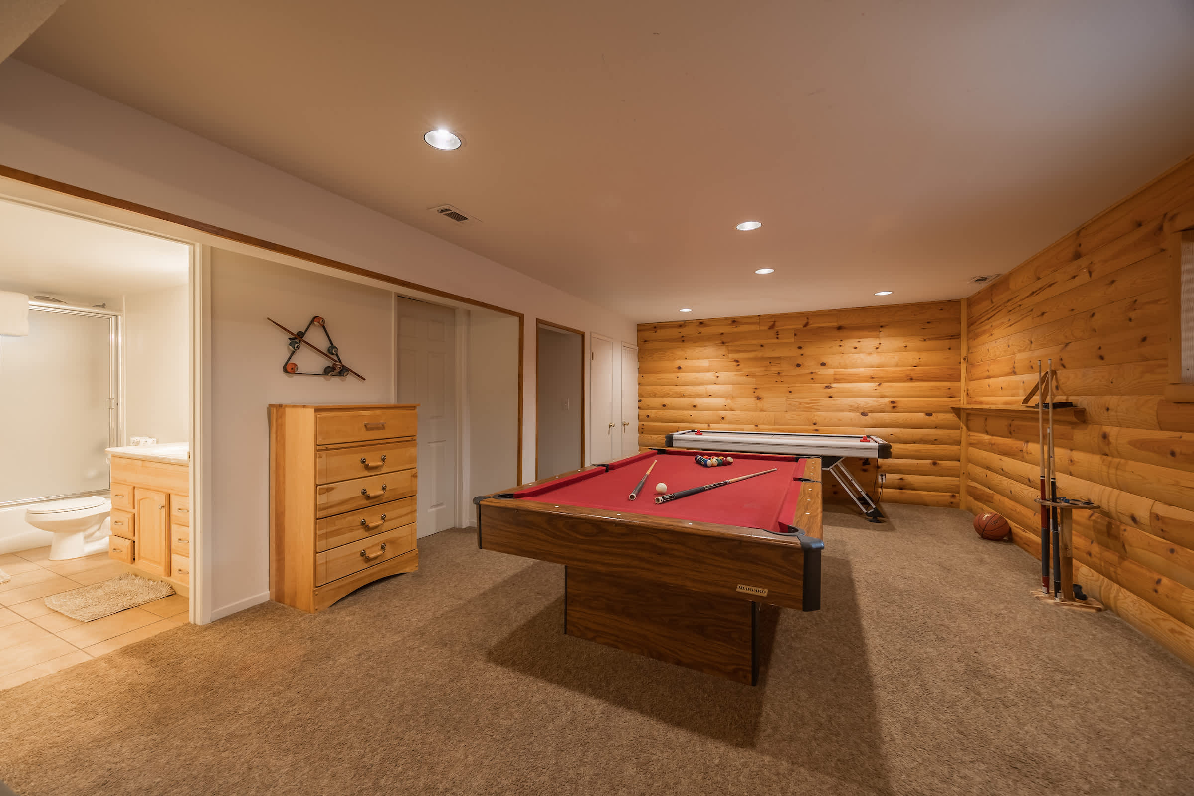 Cozy up at this spacious Big Bear retreat! 3 bedrooms, 3 baths, wood floors, a fireplace, full cook’s kitchen, game room, and fast Wi-Fi. Relax on the deck, soak in the hot tub, grill under the pines, and enjoy a fully fenced backyard. Steps to Meadow Park and the lake, and minutes to the Village, Snow Summit, and hiking—your ideal mountain escape!