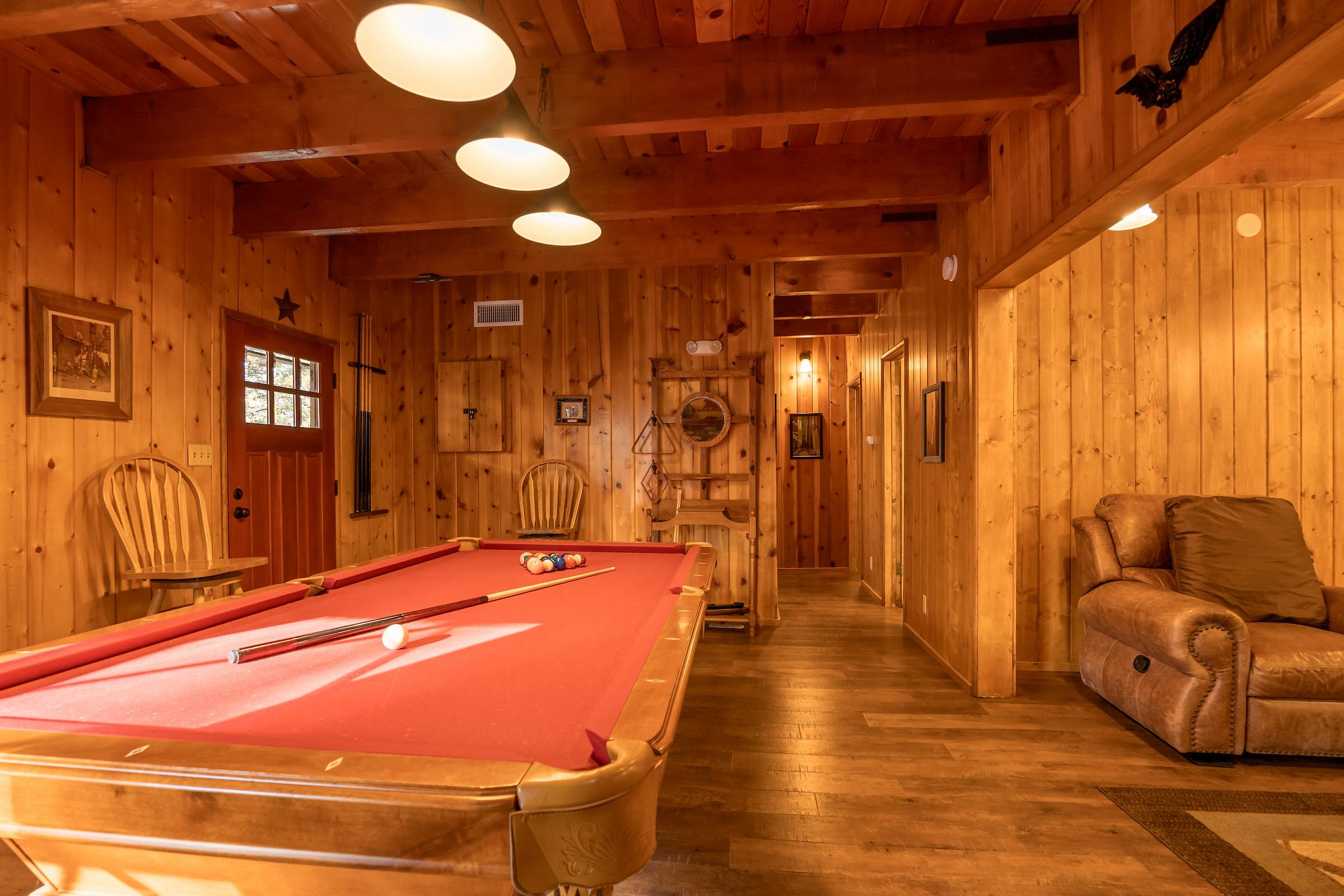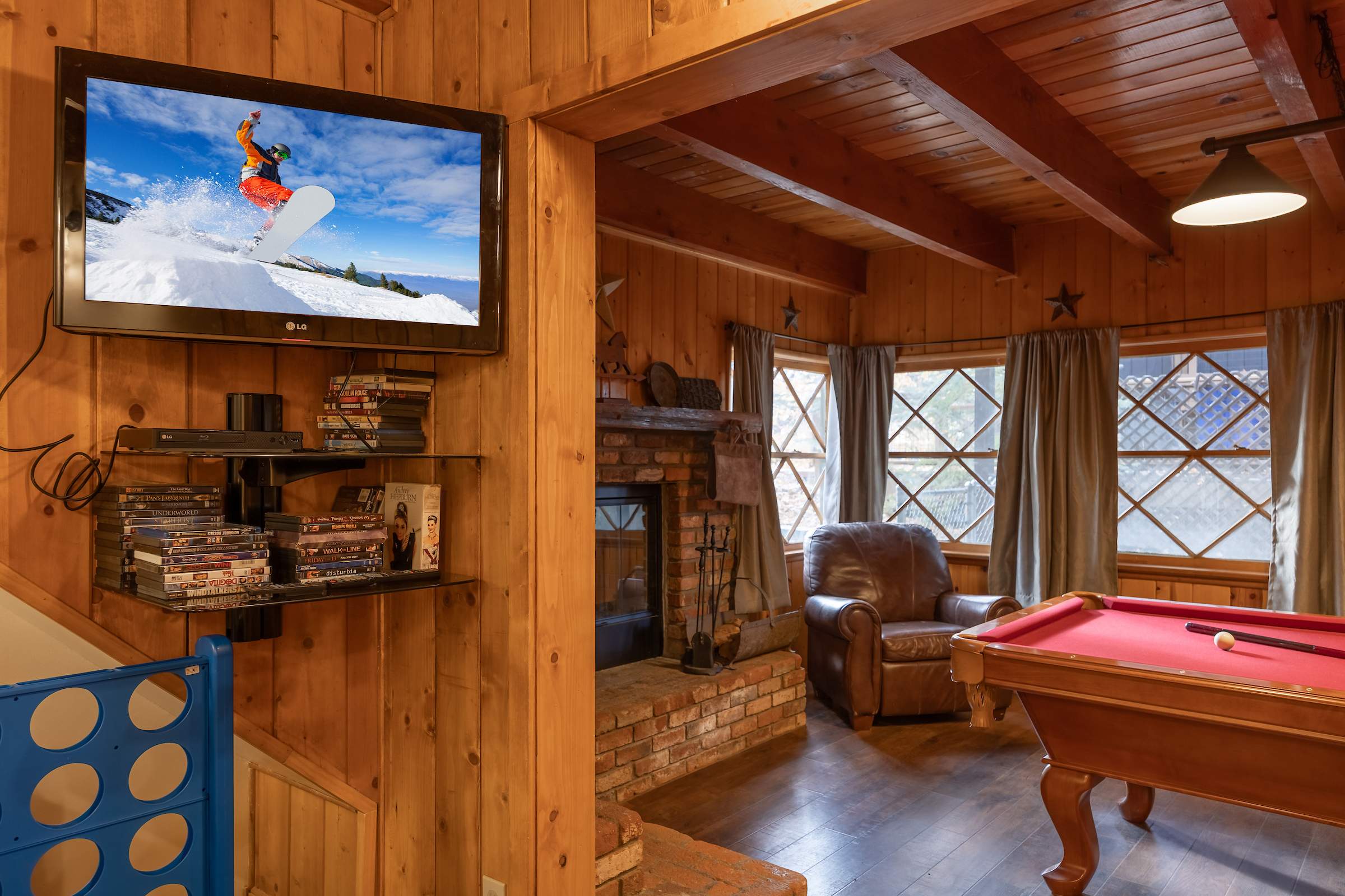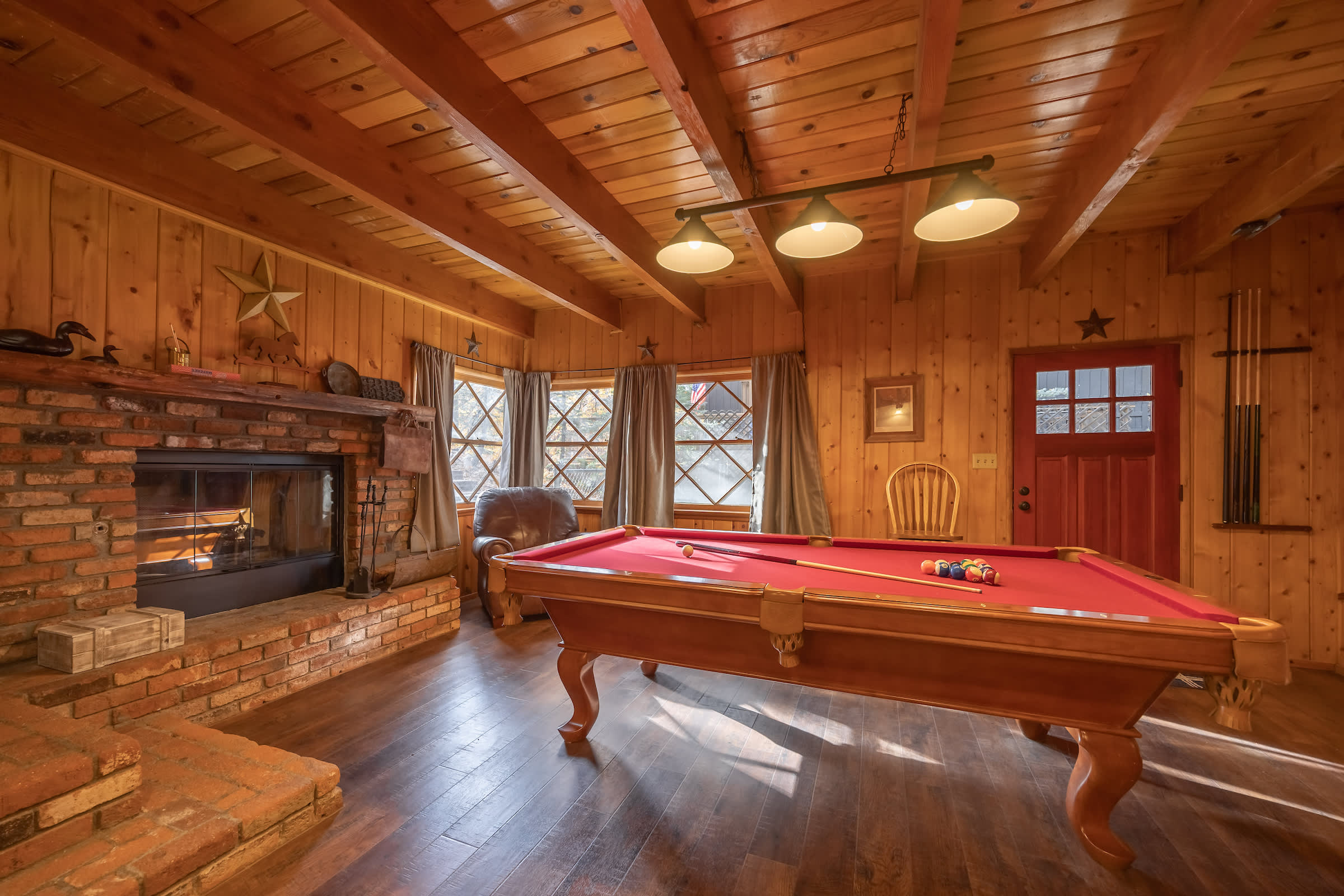 Welcome to The Bear Necessities, your perfect mountain escape! This spacious 4-bedroom cabin blends modern comfort with a true rustic feel. Enjoy two cozy fireplaces, a fun game room with a pool table, and a fully stocked kitchen for family meals. Stay connected with fast Wi-Fi and relax after a day of adventure. Ideally located just minutes from Bear Mountain Ski Resort, this peaceful retreat is perfect for families and friends looking to unwind and make lasting memories in the mountains.