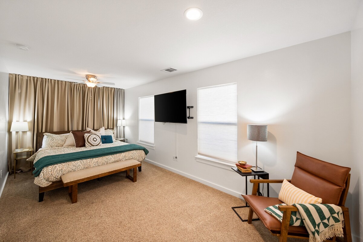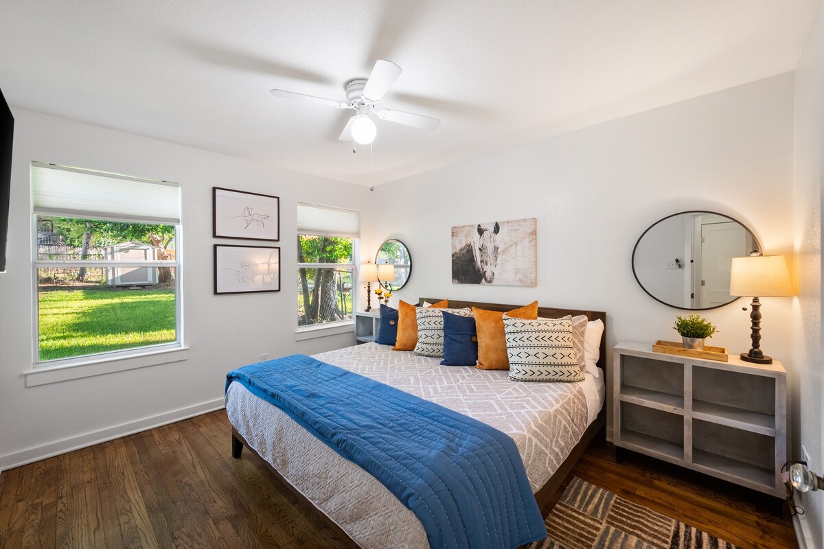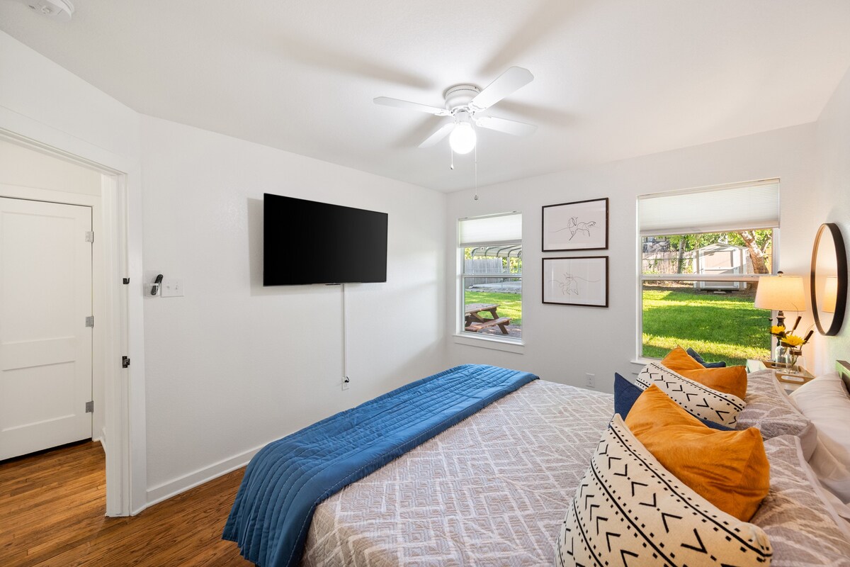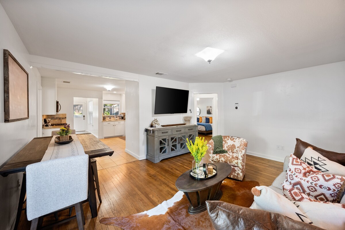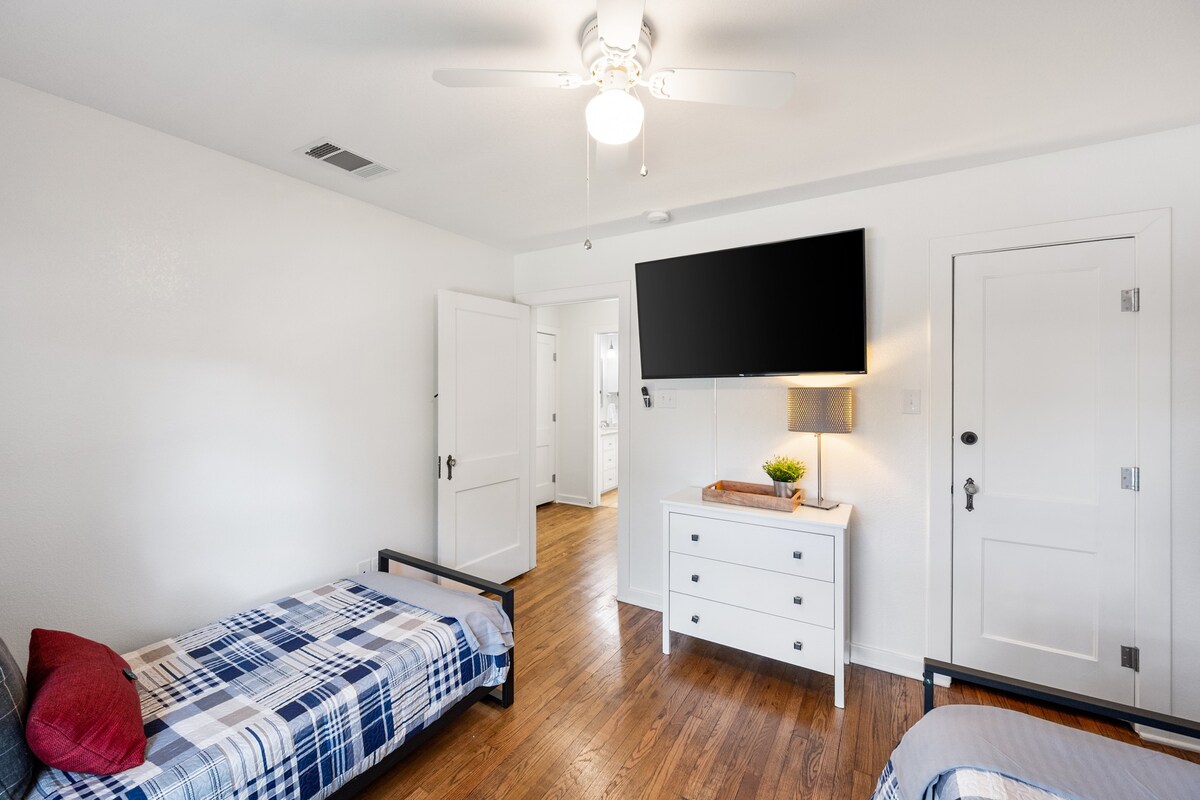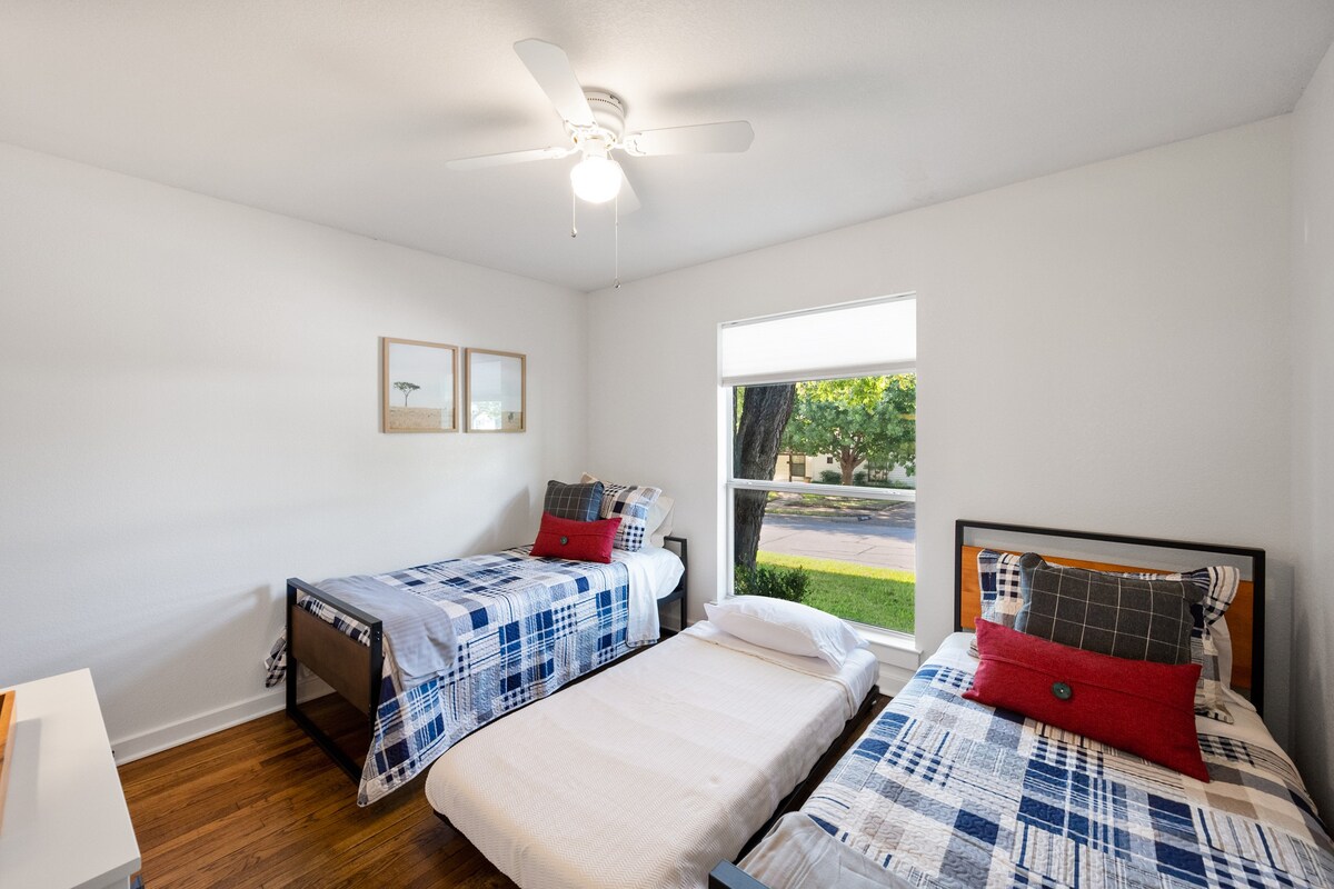 Welcome to our jaw-droppin' Fort Worth home, right next to Dickies Arena! 3 big bedrooms, 2 full baths, and fully stocked kitchens for cookin' up a storm. Comfy king-size beds in the master and second bedroom, and a comfortable third bedroom with three cozy twin beds.
