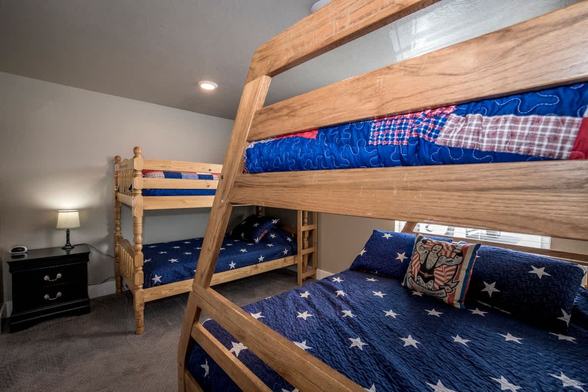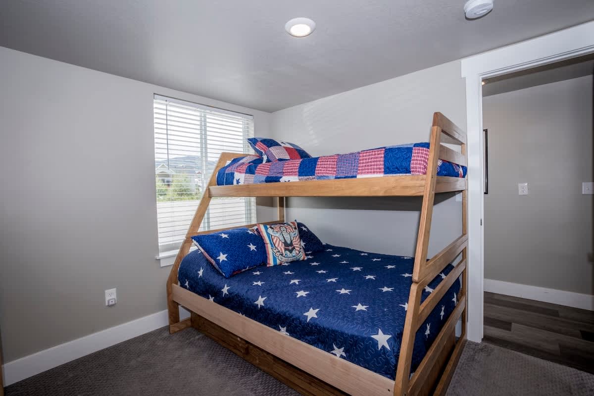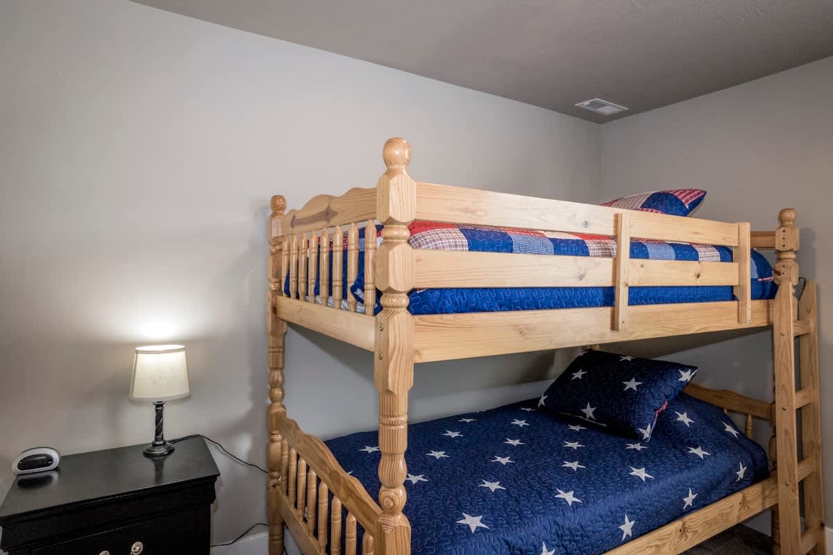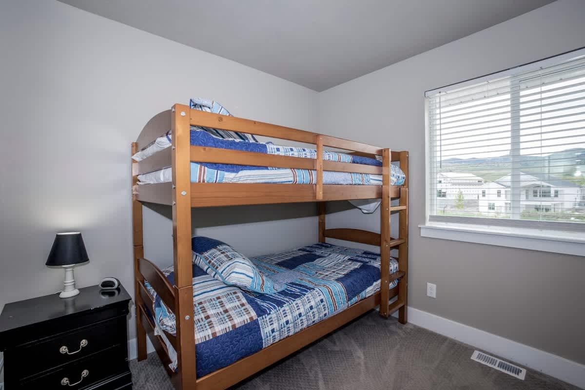 Bunker 31 Townhome #31 Sleeps 8 people (8 max) Parking for up to 2 vehicles 4 bedrooms, 2 bathrooms, 2 levels 1520 square feet ***Note – There are 24 stairs to climb from the main level entrance to the upstairs area where the kitchen and 2 bedrooms are located.