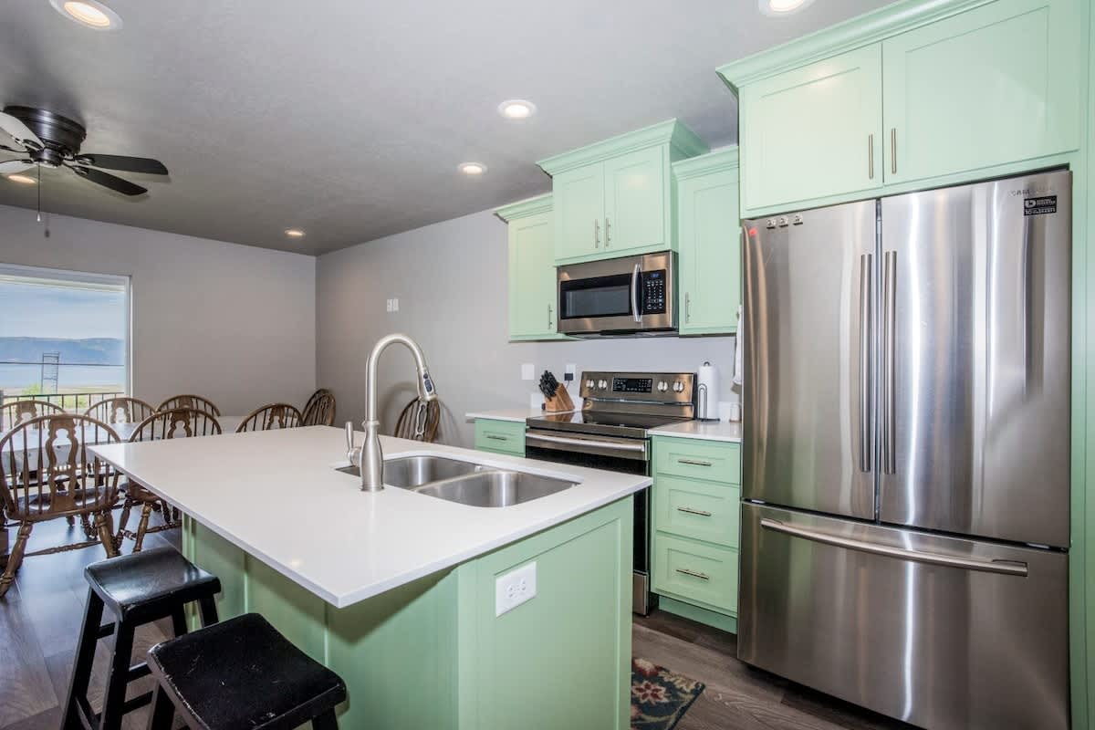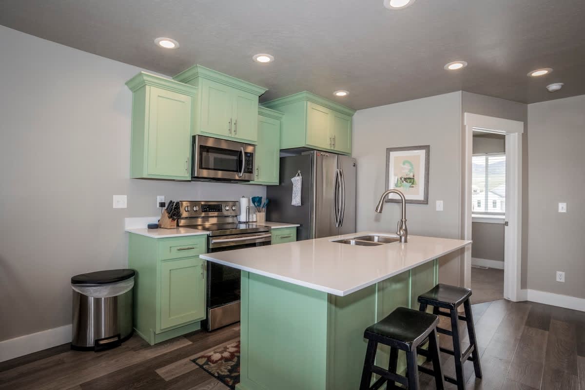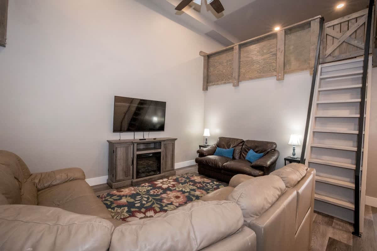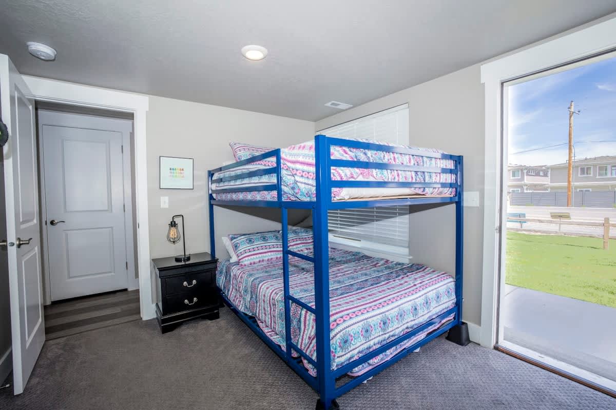 Bunker 31 Townhome #31 Sleeps 8 people (8 max) Parking for up to 2 vehicles 4 bedrooms, 2 bathrooms, 2 levels 1520 square feet ***Note – There are 24 stairs to climb from the main level entrance to the upstairs area where the kitchen and 2 bedrooms are located.
