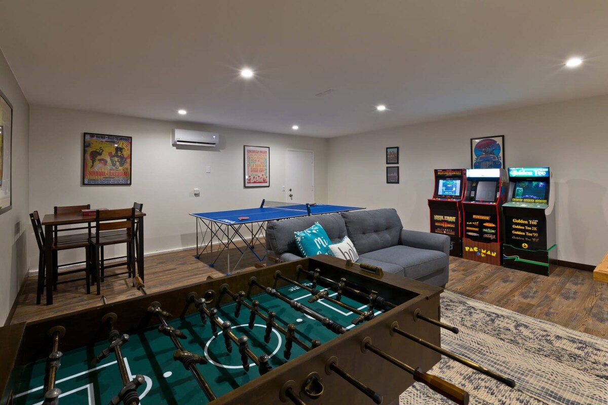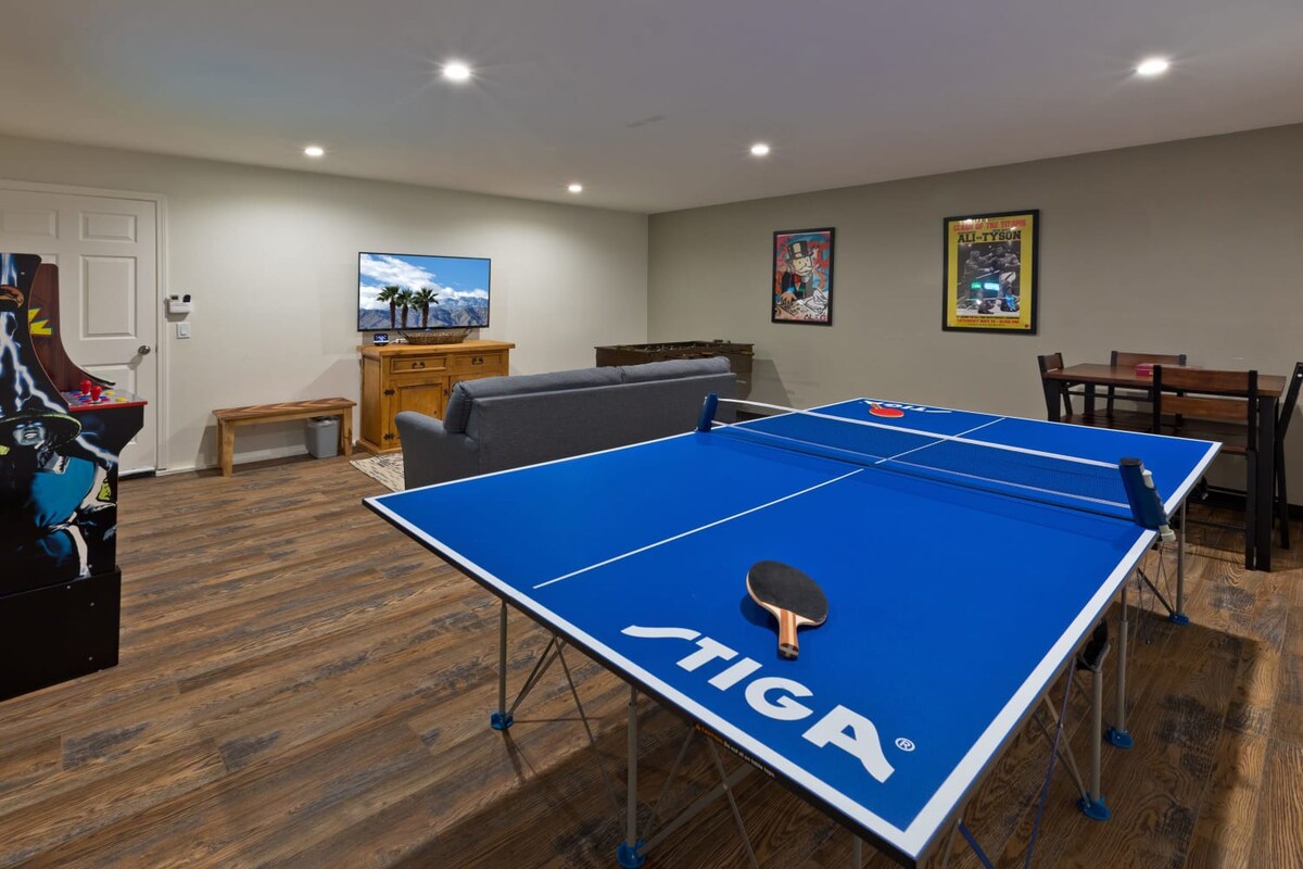 Comfortably accommodating 8 guests with 3 bedrooms and 7 beds, plus 2 bathrooms, you're sure to experience total relaxation here. The kitchen sits under a tall ceiling in the heart of the open layout, and it's equipped with a breakfast bar and modern appliances to make your meal preps easy. Soak in the swimming pool  while taking in the views or relax in the new hot tub. Features high-speed Wi-Fi on a 5G network and Smart LED TVs in each room.