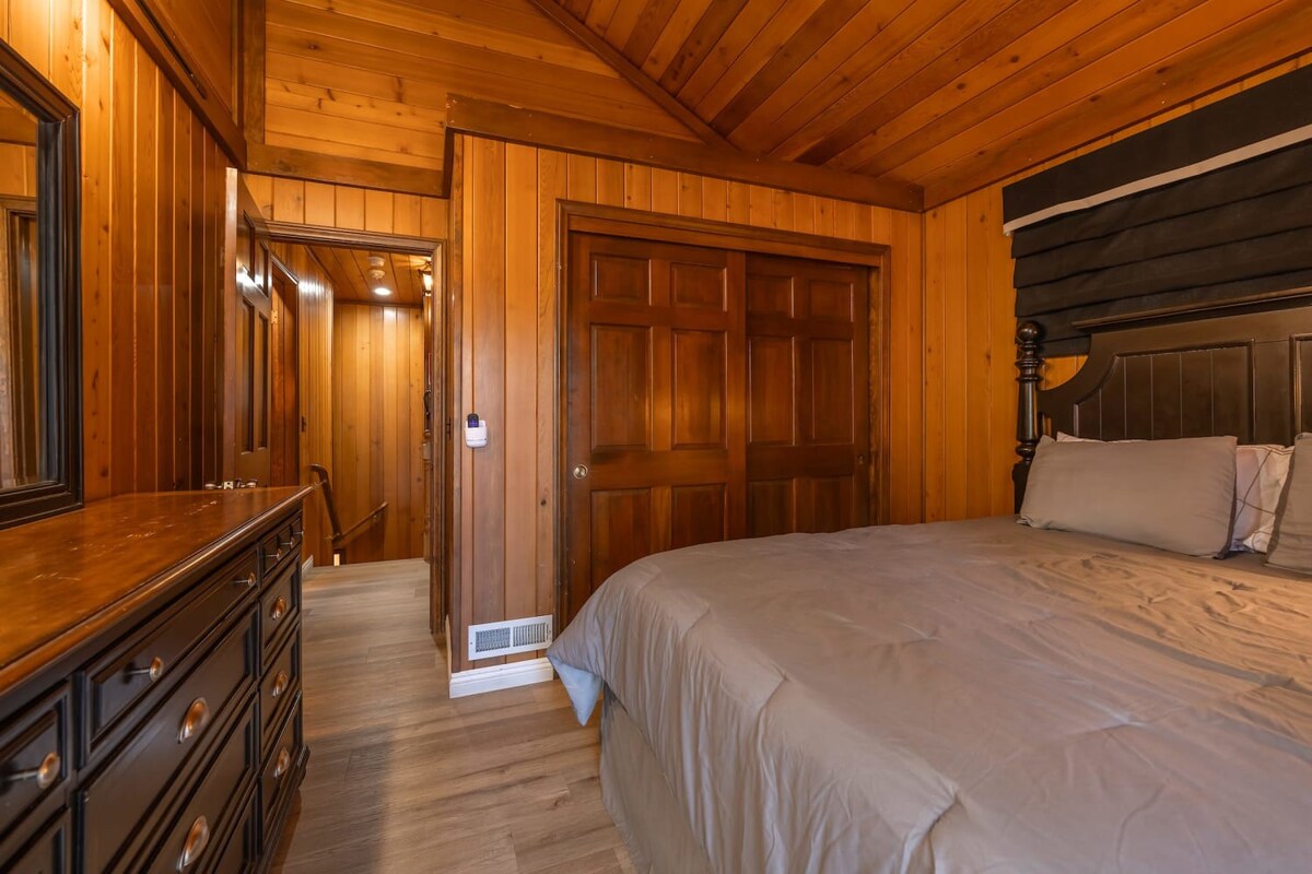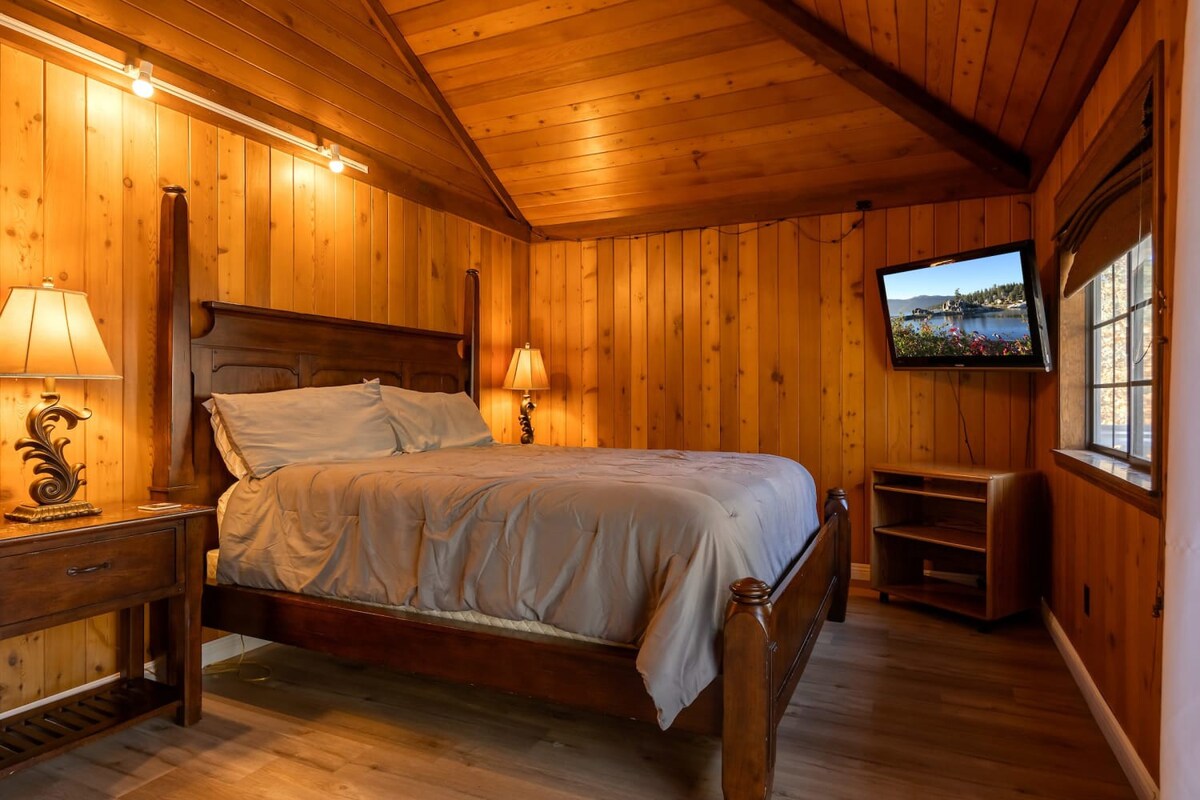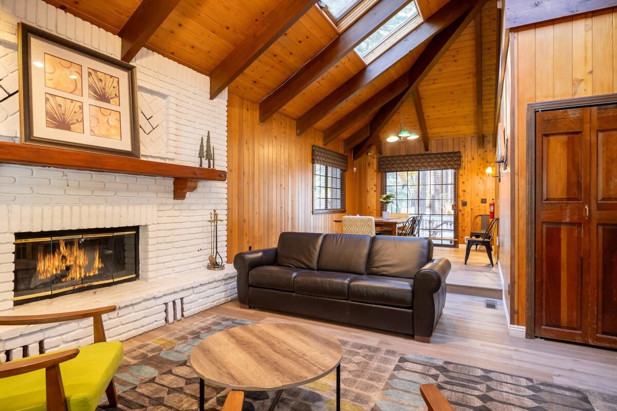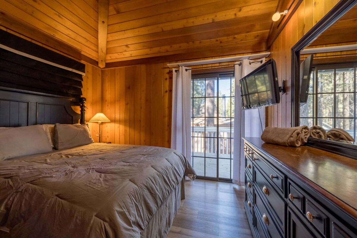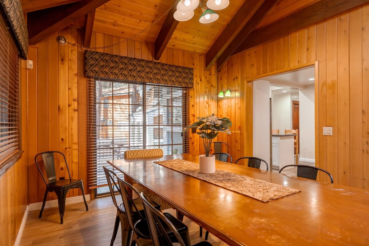 This entertaining cabin, offering 3 big bedrooms and 3.5 bathrooms. It's a perfect choice for families and groups of friends. Snuggle up by the wood-burning fireplaces and relaxing indoor spa! The back deck with a BBQ provides an ideal space to enjoy the outdoors and relish delicious meals. Step outside, and you're practically at Snow Summit, eliminating all parking and transportation concerns