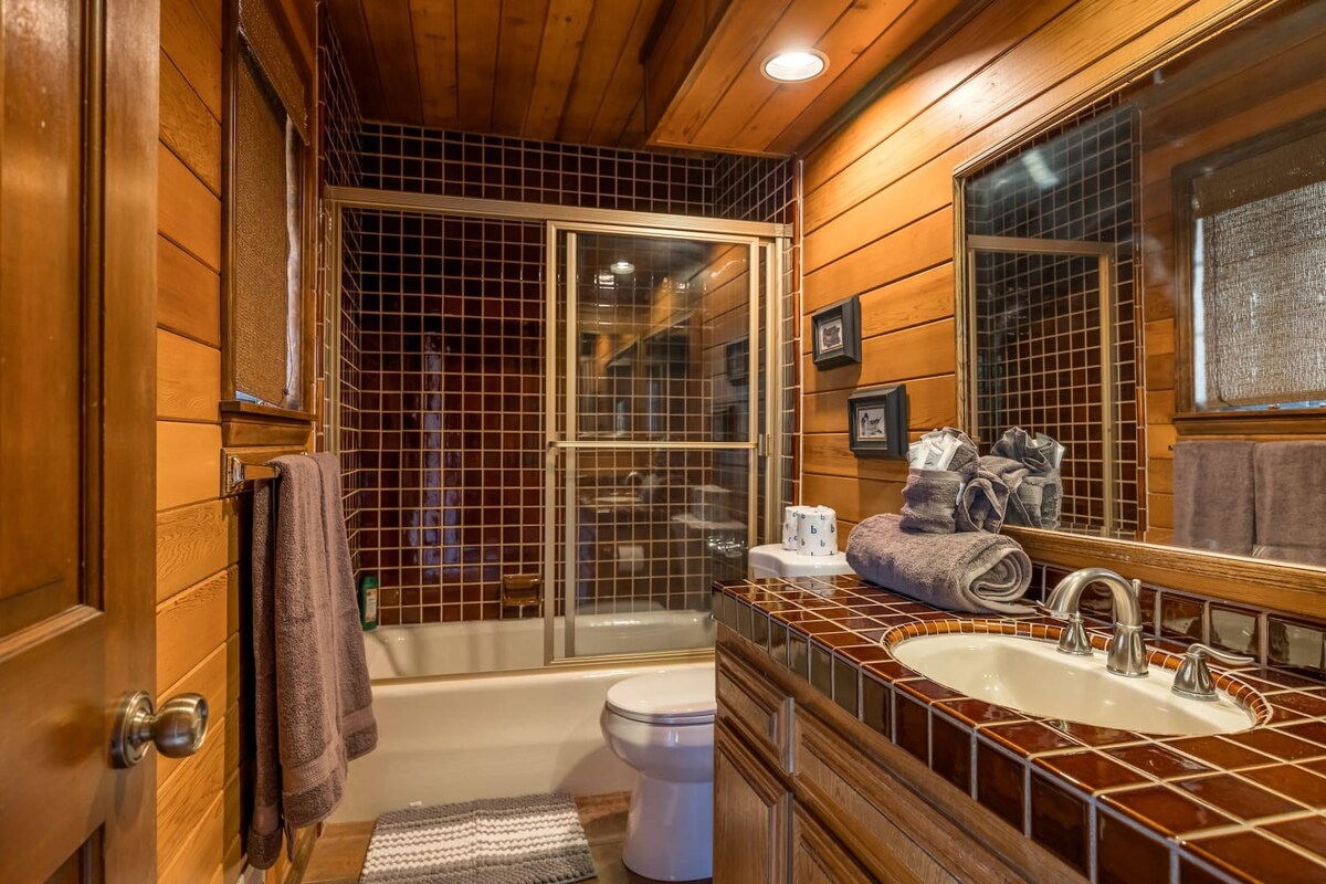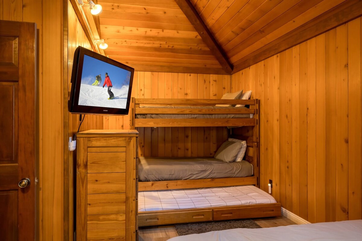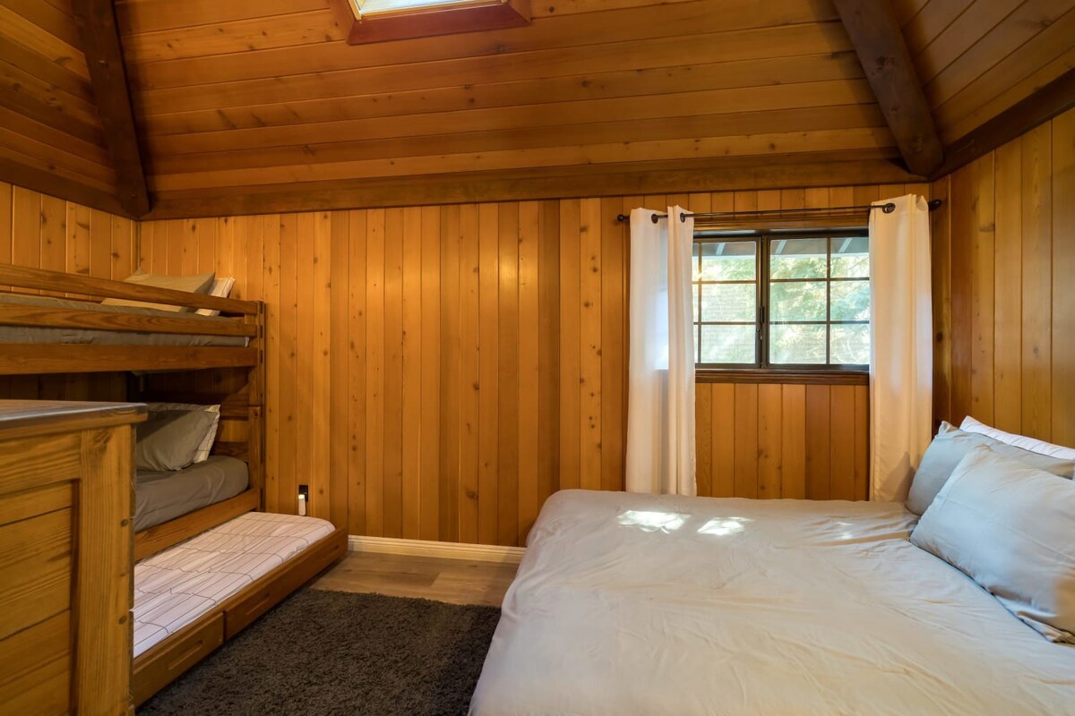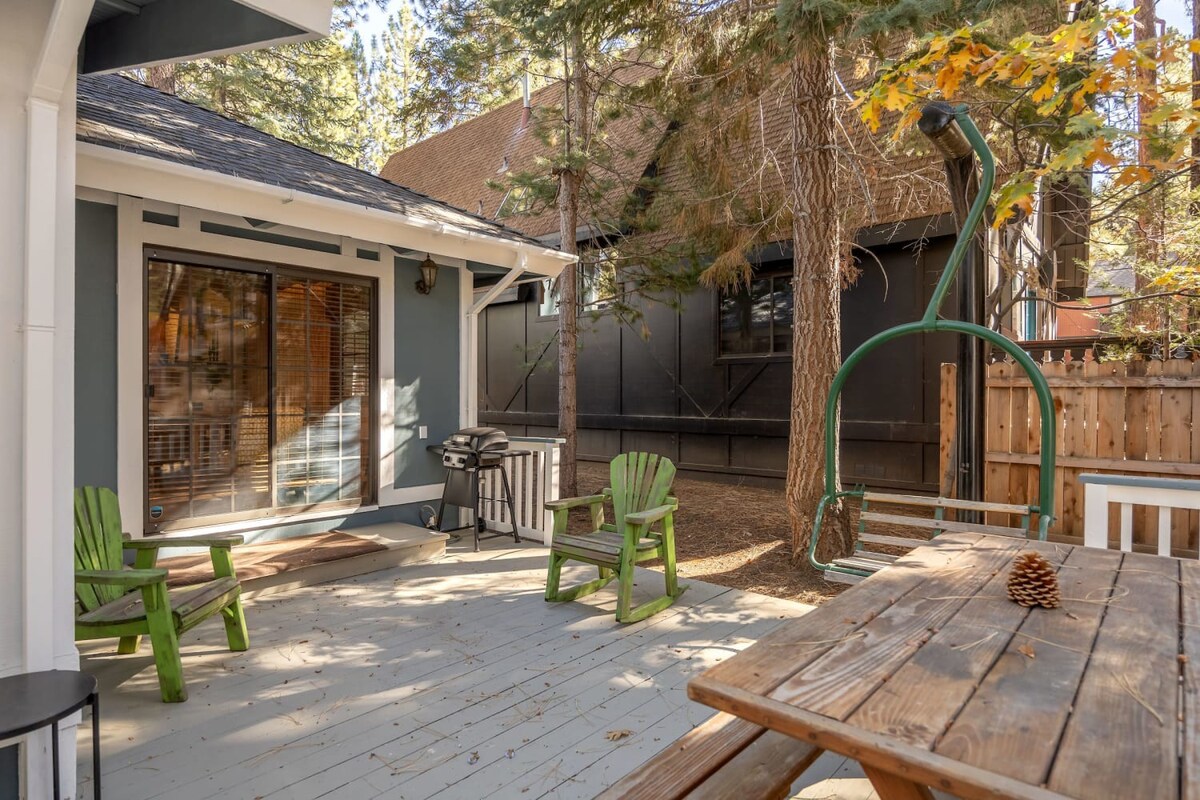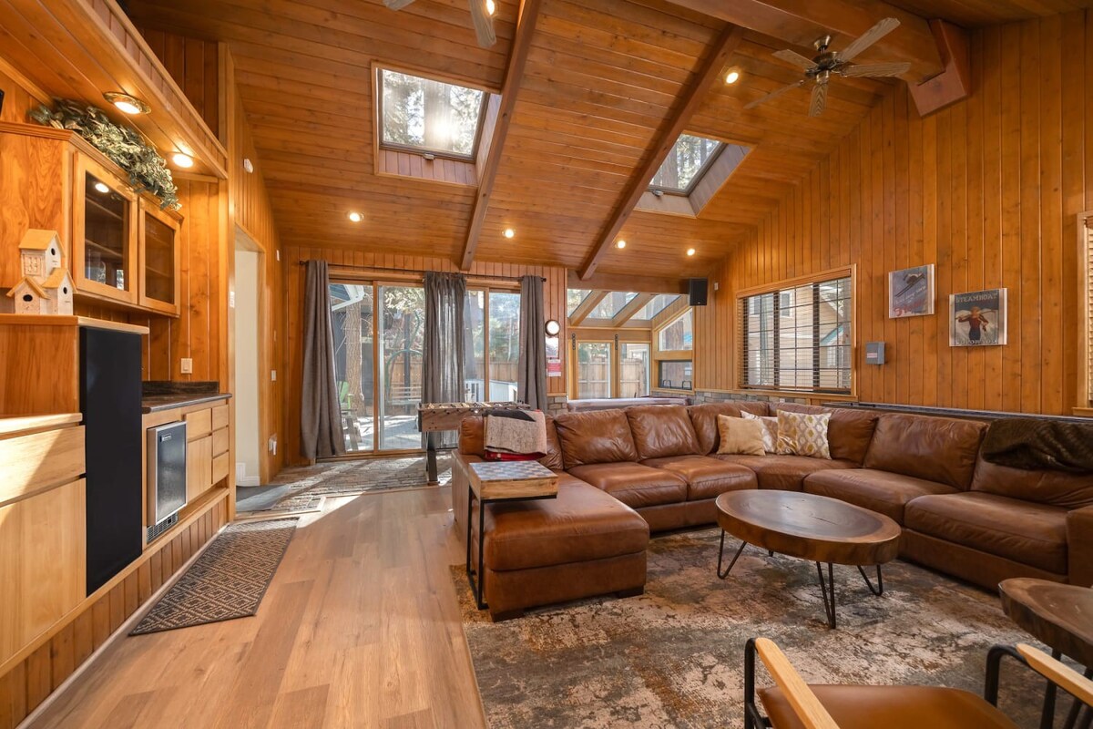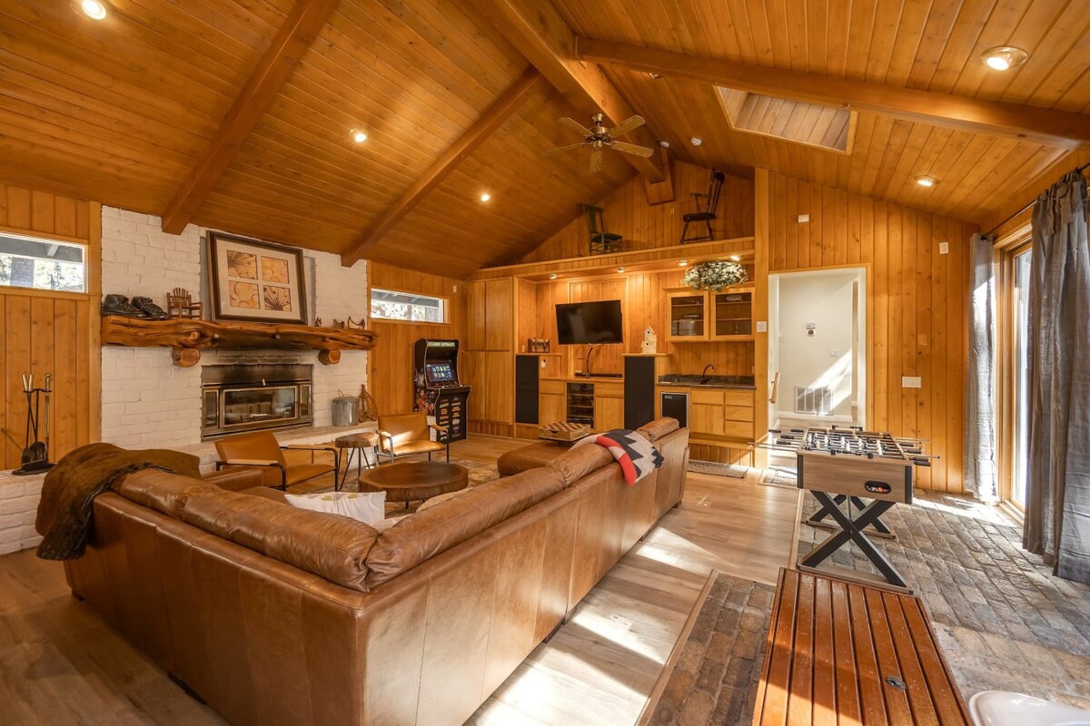 This entertaining cabin, offering 3 big bedrooms and 3.5 bathrooms. It's a perfect choice for families and groups of friends. Snuggle up by the wood-burning fireplaces and relaxing indoor spa! The back deck with a BBQ provides an ideal space to enjoy the outdoors and relish delicious meals. Step outside, and you're practically at Snow Summit, eliminating all parking and transportation concerns