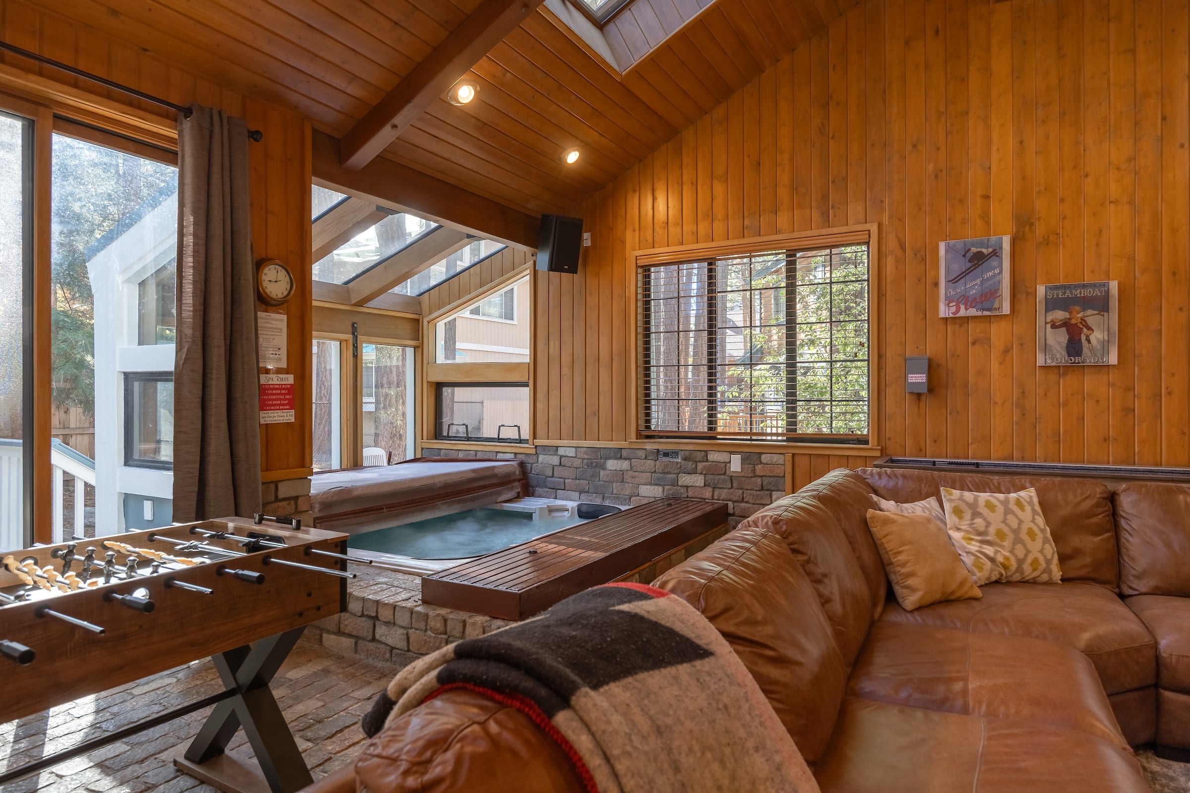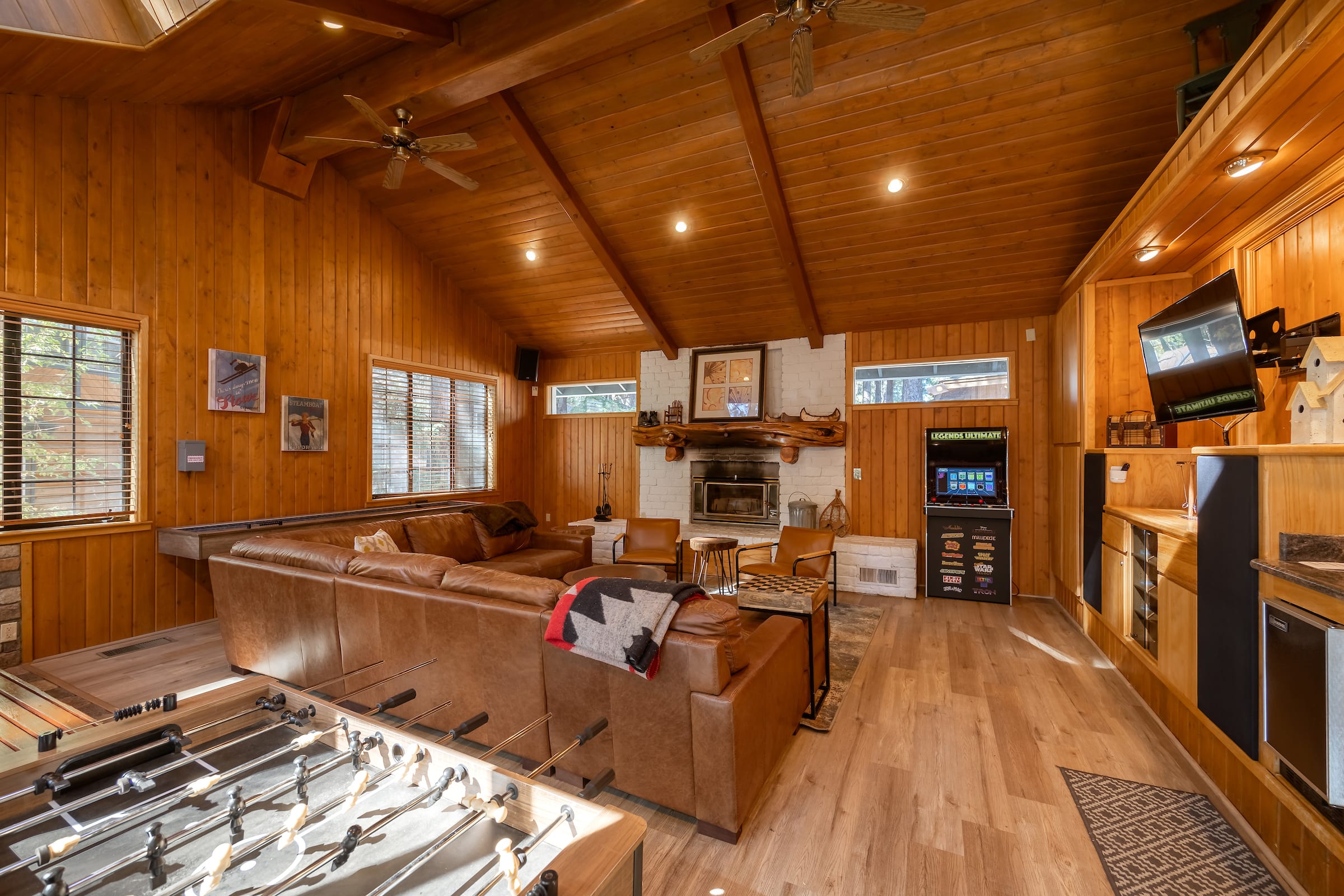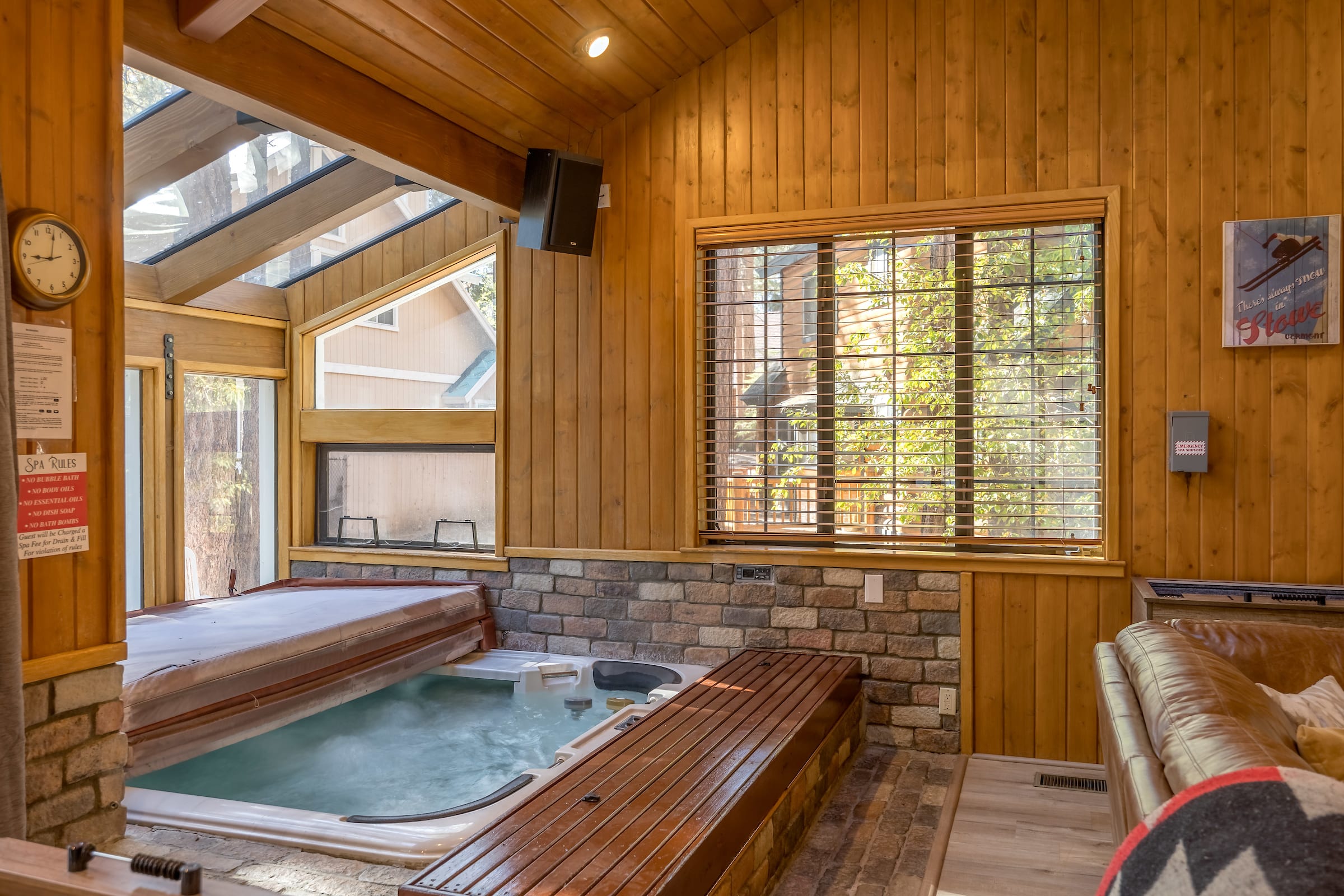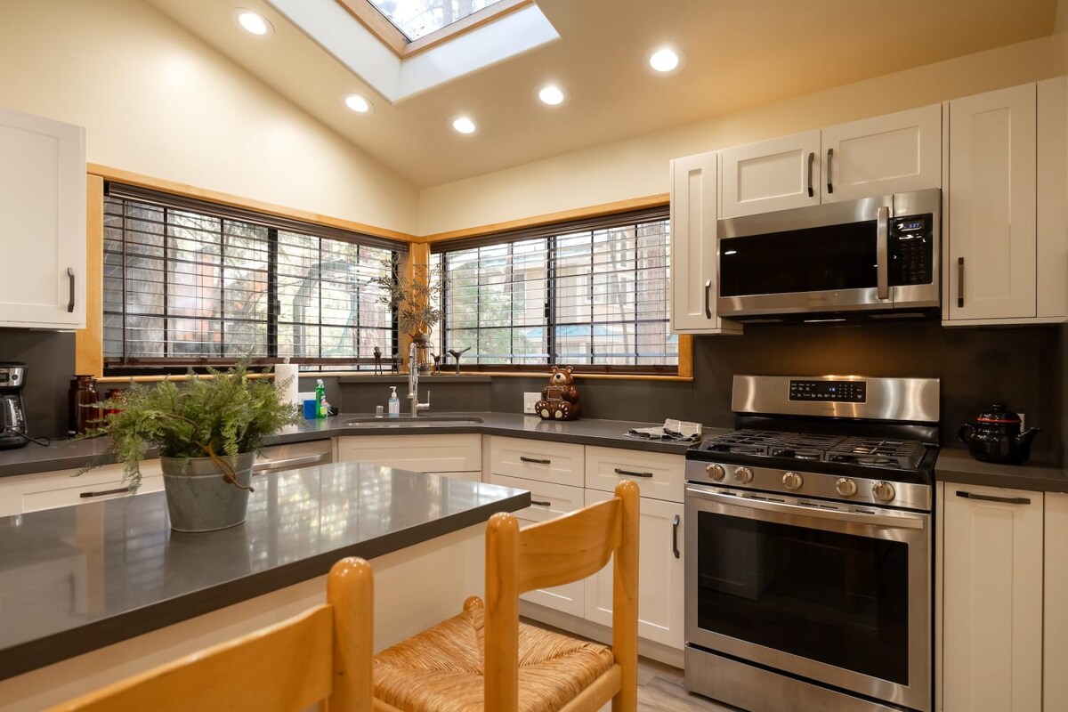 This entertaining cabin, offering 3 big bedrooms and 3.5 bathrooms. It's a perfect choice for families and groups of friends. Snuggle up by the wood-burning fireplaces and relaxing indoor spa! The back deck with a BBQ provides an ideal space to enjoy the outdoors and relish delicious meals. Step outside, and you're practically at Snow Summit, eliminating all parking and transportation concerns