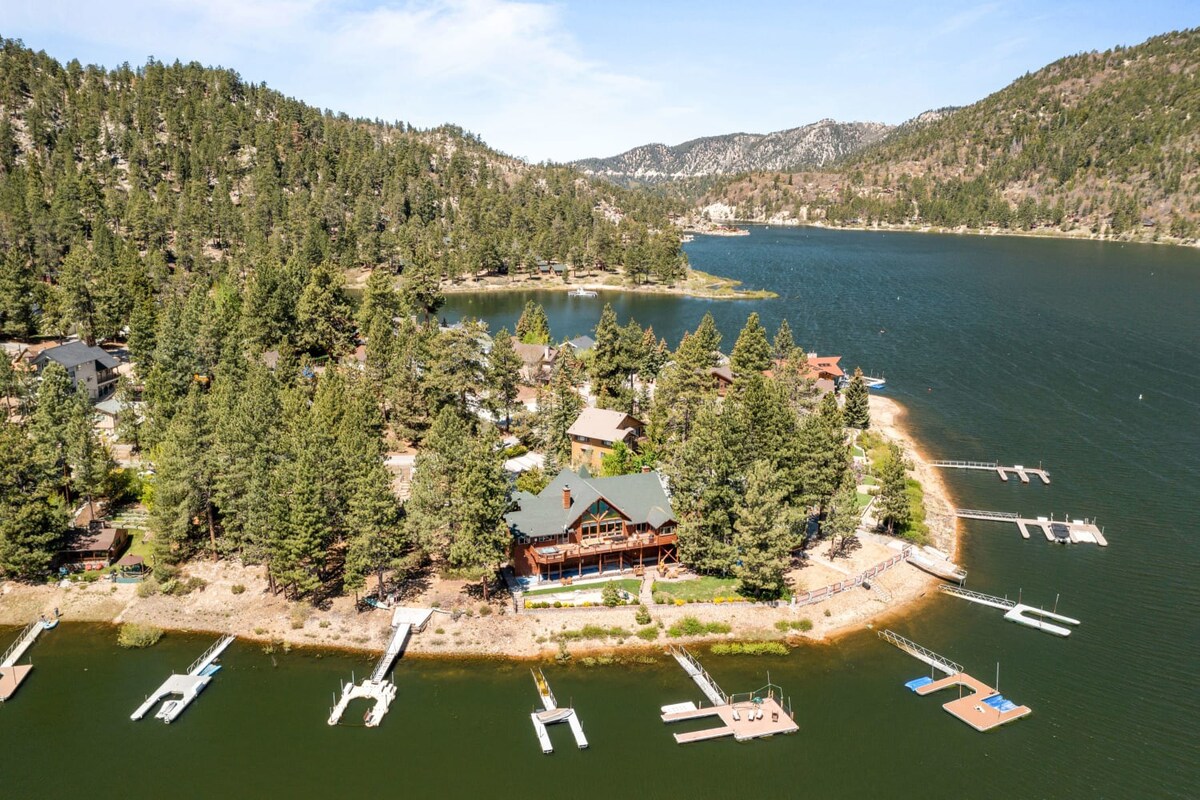 Experience refined mountain living at this exclusive lakefront luxury estate on Big Bear Lake, just minutes from the ski slopes and village. This iconic log home pairs timeless craftsmanship with elevated modern comforts, offering breathtaking water views, expansive entertaining spaces, and resort-style amenities for an unforgettable high-end getaway.