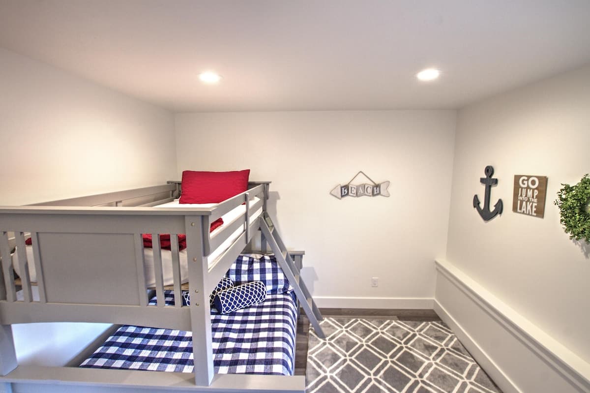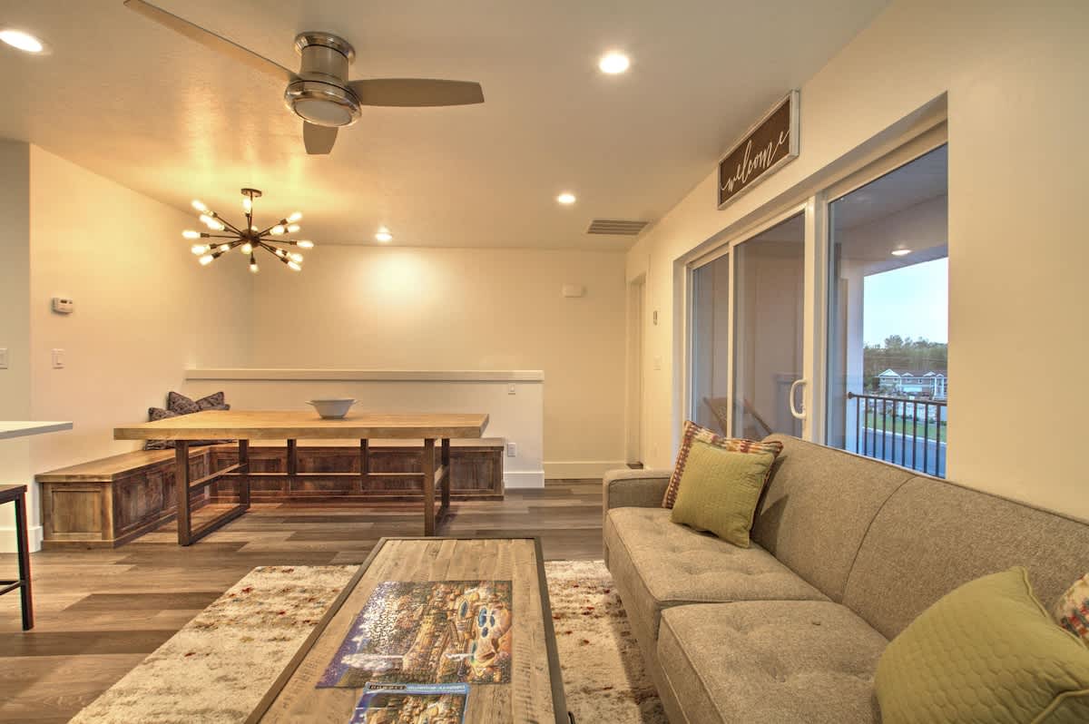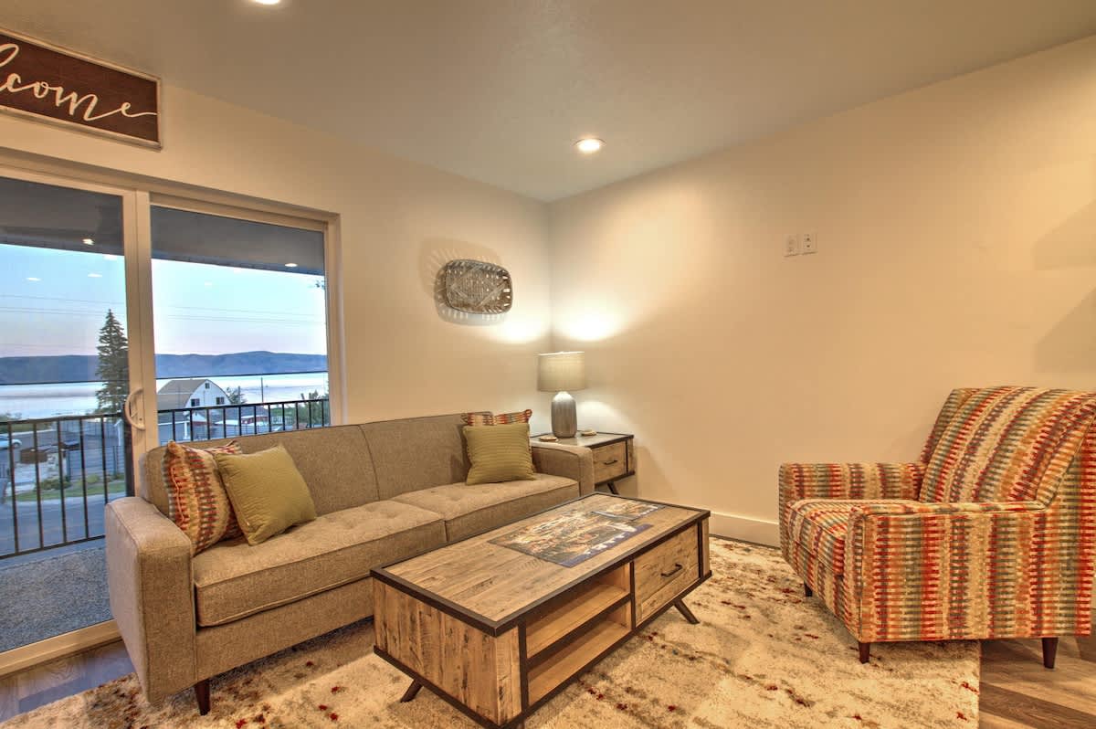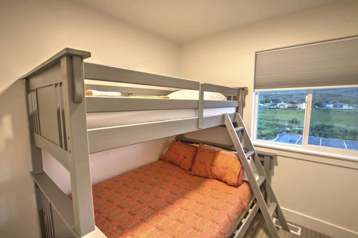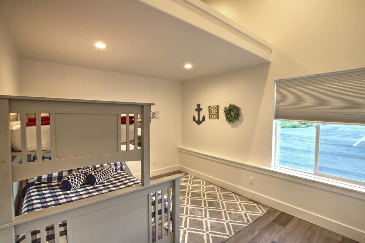 Lakeview Townhome #33 Sleeps 10 people (12 max) Parking for up to 3 vehicles 4 bedrooms, 2 bathrooms, 2 levels 1136 square feet ***Note – There are 24 stairs to climb from the main level entrance to the upstairs area where the kitchen and 2 bedrooms are located.