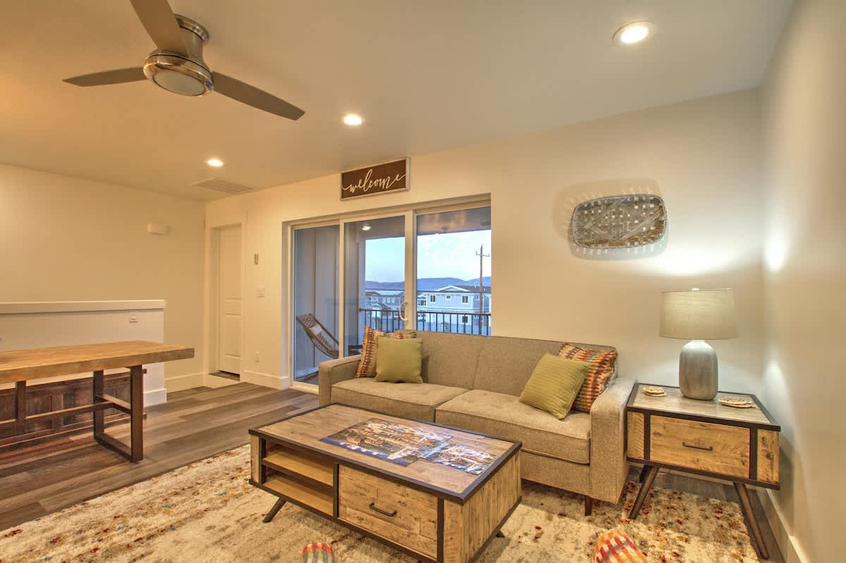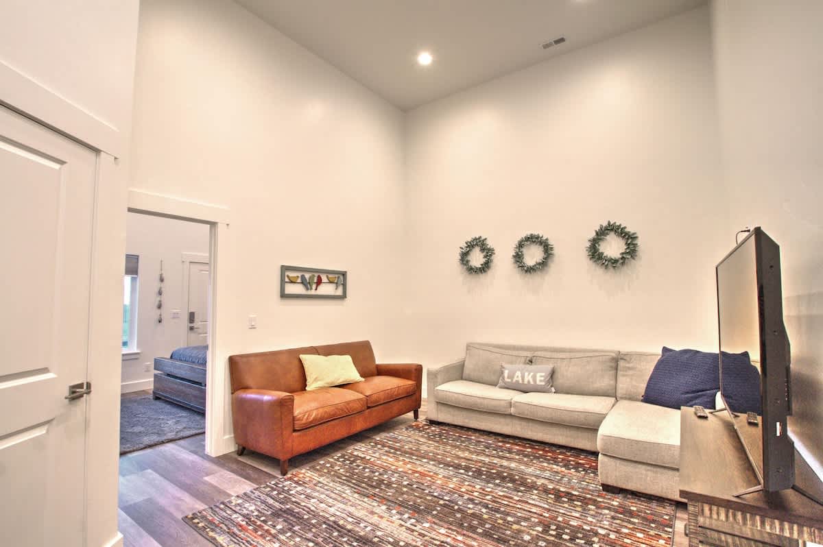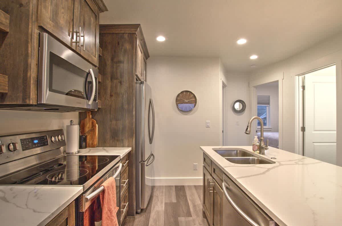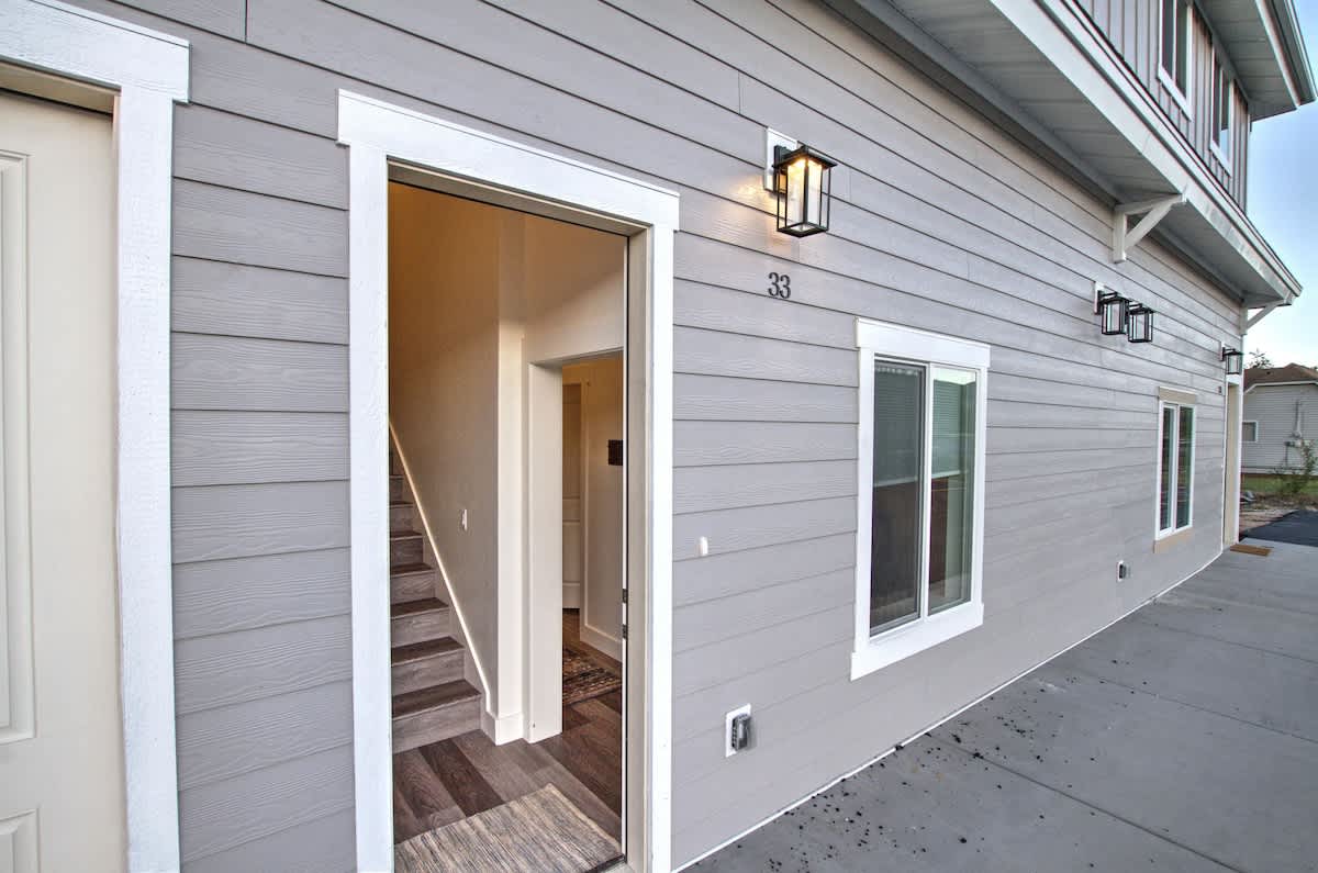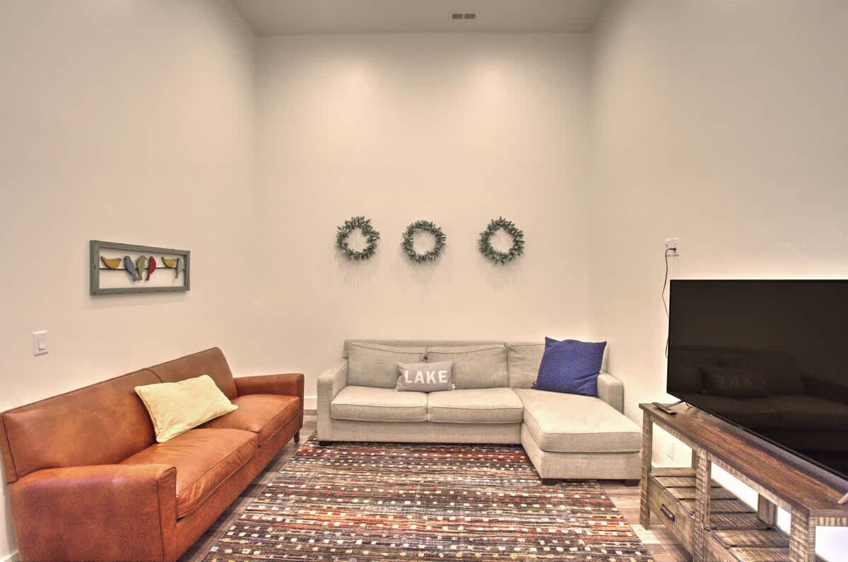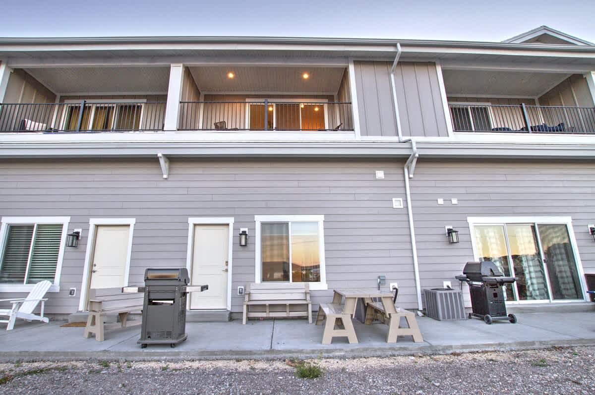 Lakeview Townhome #33 Sleeps 10 people (12 max) Parking for up to 3 vehicles 4 bedrooms, 2 bathrooms, 2 levels 1136 square feet ***Note – There are 24 stairs to climb from the main level entrance to the upstairs area where the kitchen and 2 bedrooms are located.