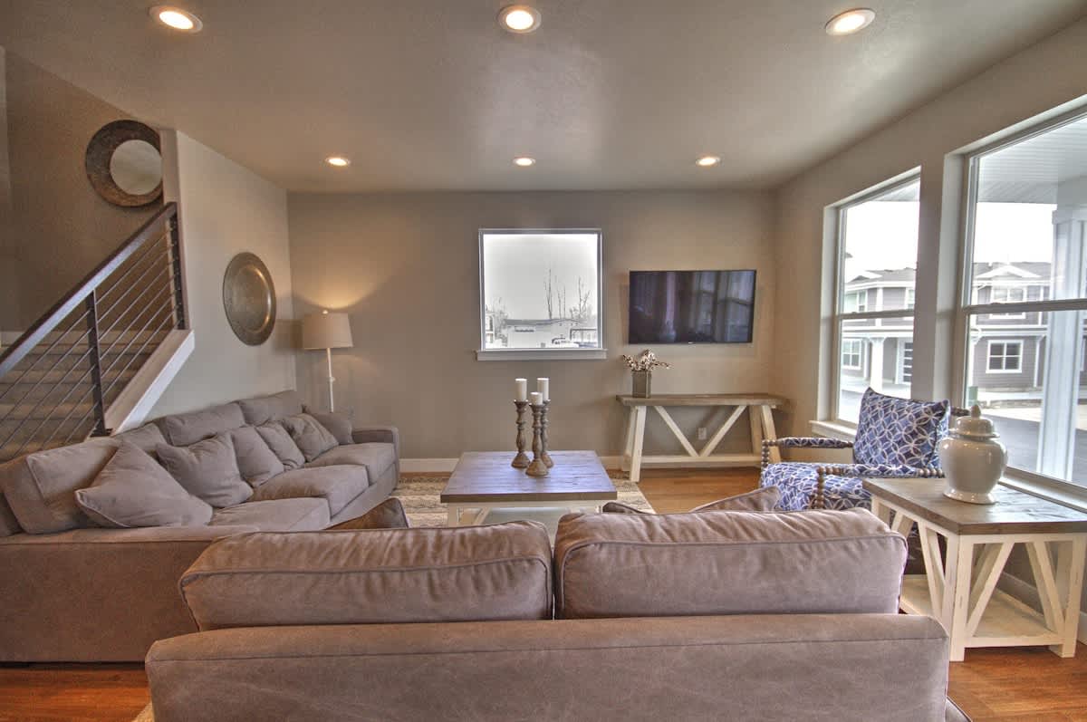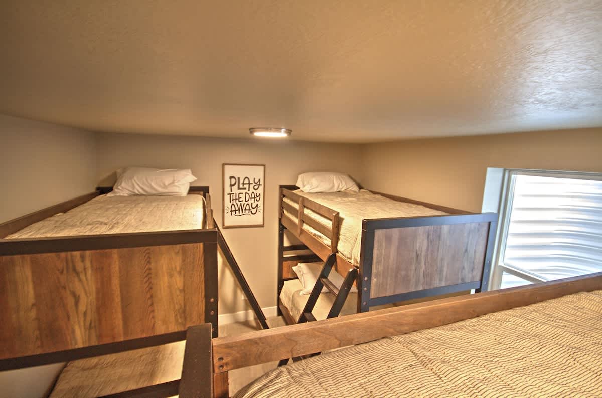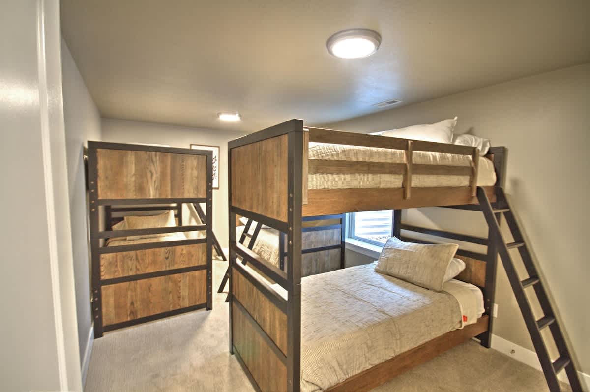 Sleeps 22 people (24 max) Parking for 1 vehicle at the property and 4 more in overflow parking 6 bedrooms, 5 bathrooms, 3 levels 3000 square feet