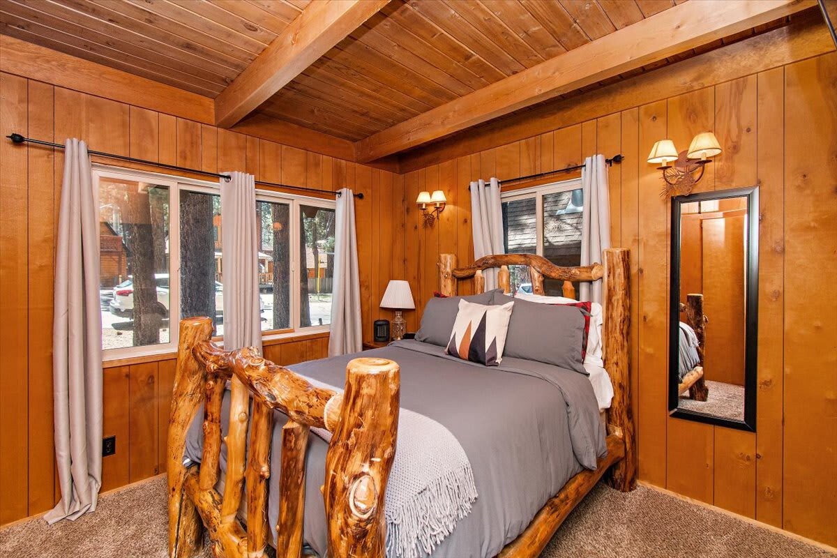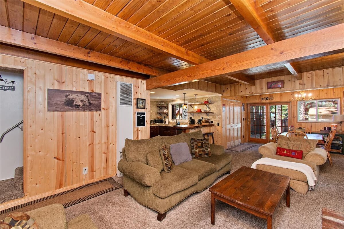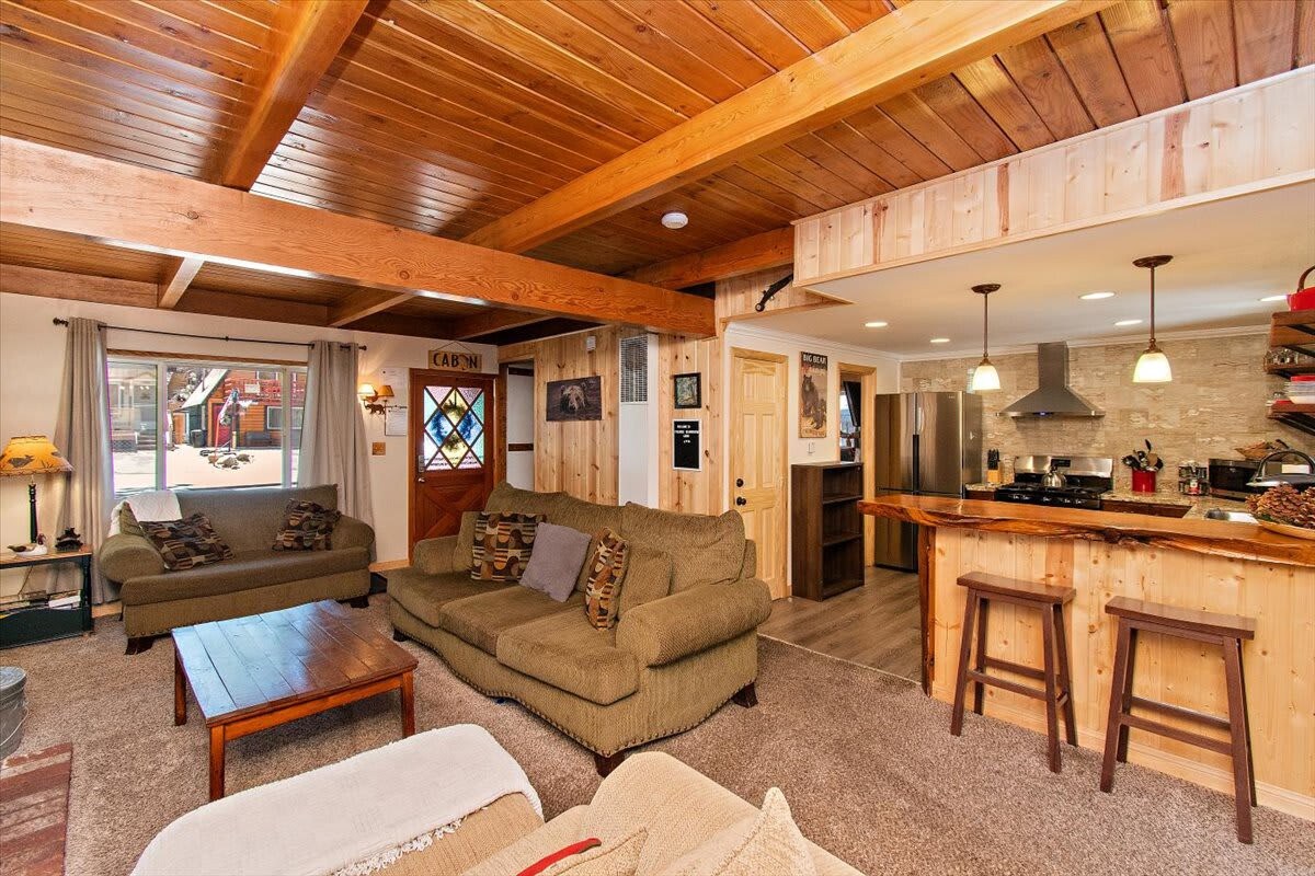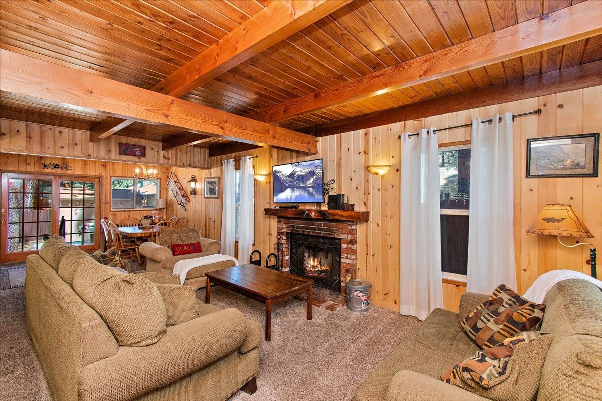 WAlK TO BEAR MOUNTAIN SHUTTLE. Walk to Bear Mountain Shuttle is a charming chalet, The Log Spa Chalet, located in a desirable area of Big Bear. It's close to Bear Mountain Ski Resort and Golf Course, and Moonridge Zoo, providing year-round entertainment. This updated and inviting home is perfect for a memorable family mountain retreat.