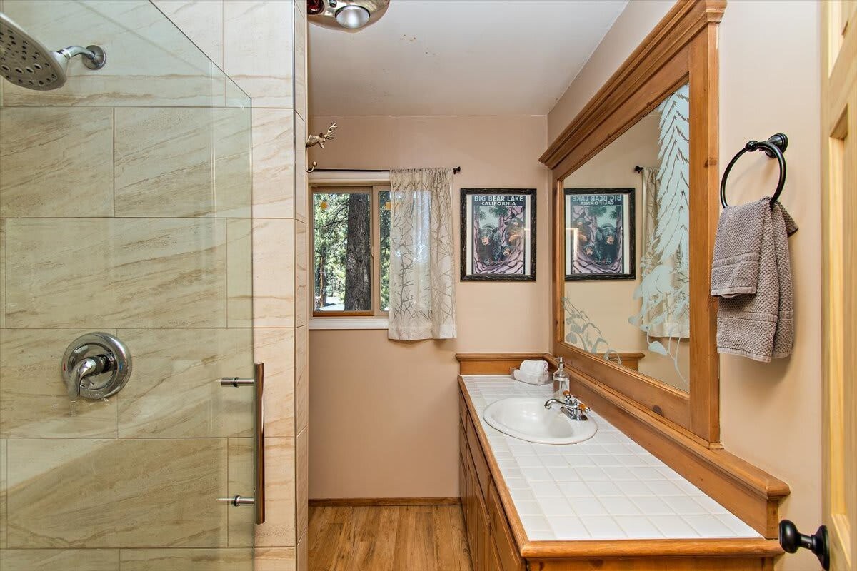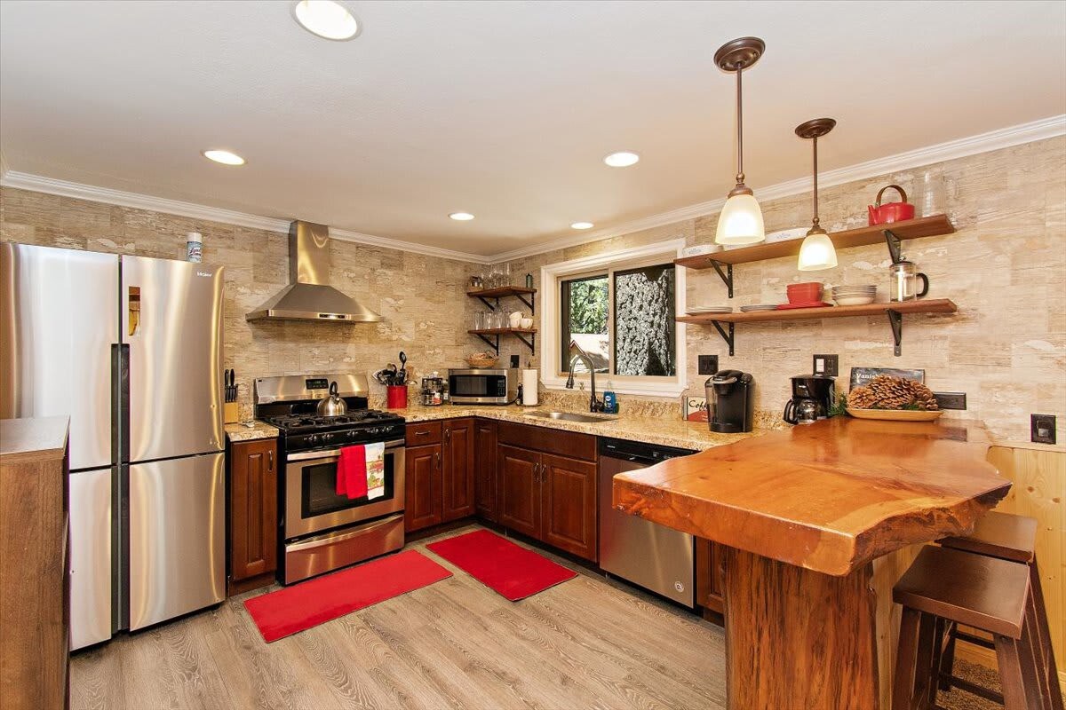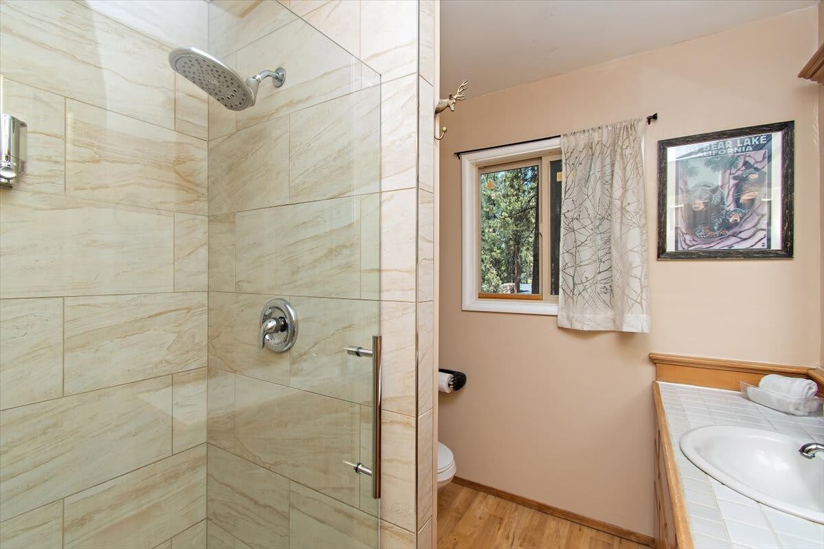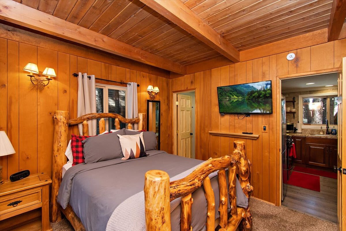 WAlK TO BEAR MOUNTAIN SHUTTLE. Walk to Bear Mountain Shuttle is a charming chalet, The Log Spa Chalet, located in a desirable area of Big Bear. It's close to Bear Mountain Ski Resort and Golf Course, and Moonridge Zoo, providing year-round entertainment. This updated and inviting home is perfect for a memorable family mountain retreat.