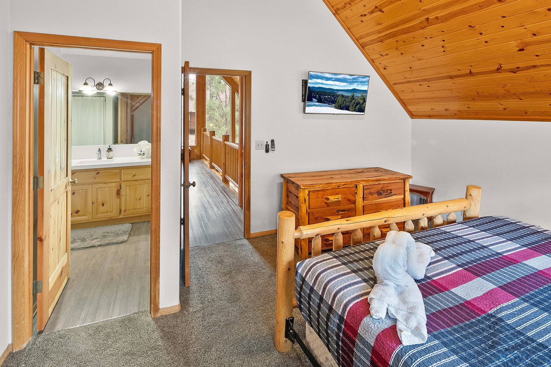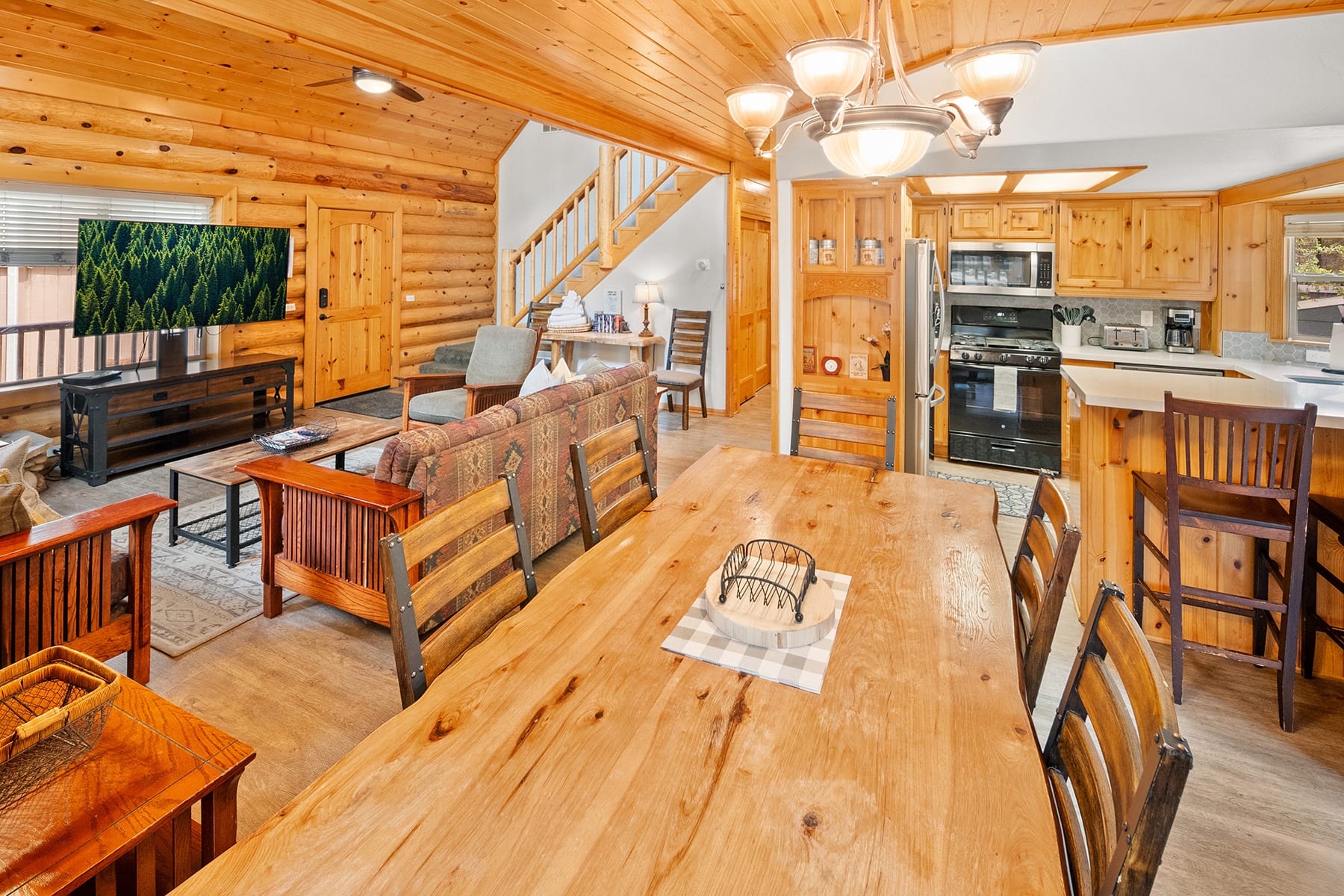 Nestled just steps away from the renowned Snow Summit Resort, this beautiful log cabin combines rustic charm with modern convenience. Enjoy the warmth of central heating and stay connected with ultra-fast Wi-Fi. Say goodbye to parking fees and crowded shuttles - the resort is at your doorstep. Three big bedrooms and two bathrooms adorned with stunning log accents, you'll find a perfect blend of comfort and mountain ambiance in this cozy cabin. Lic# VRR-2025-2191