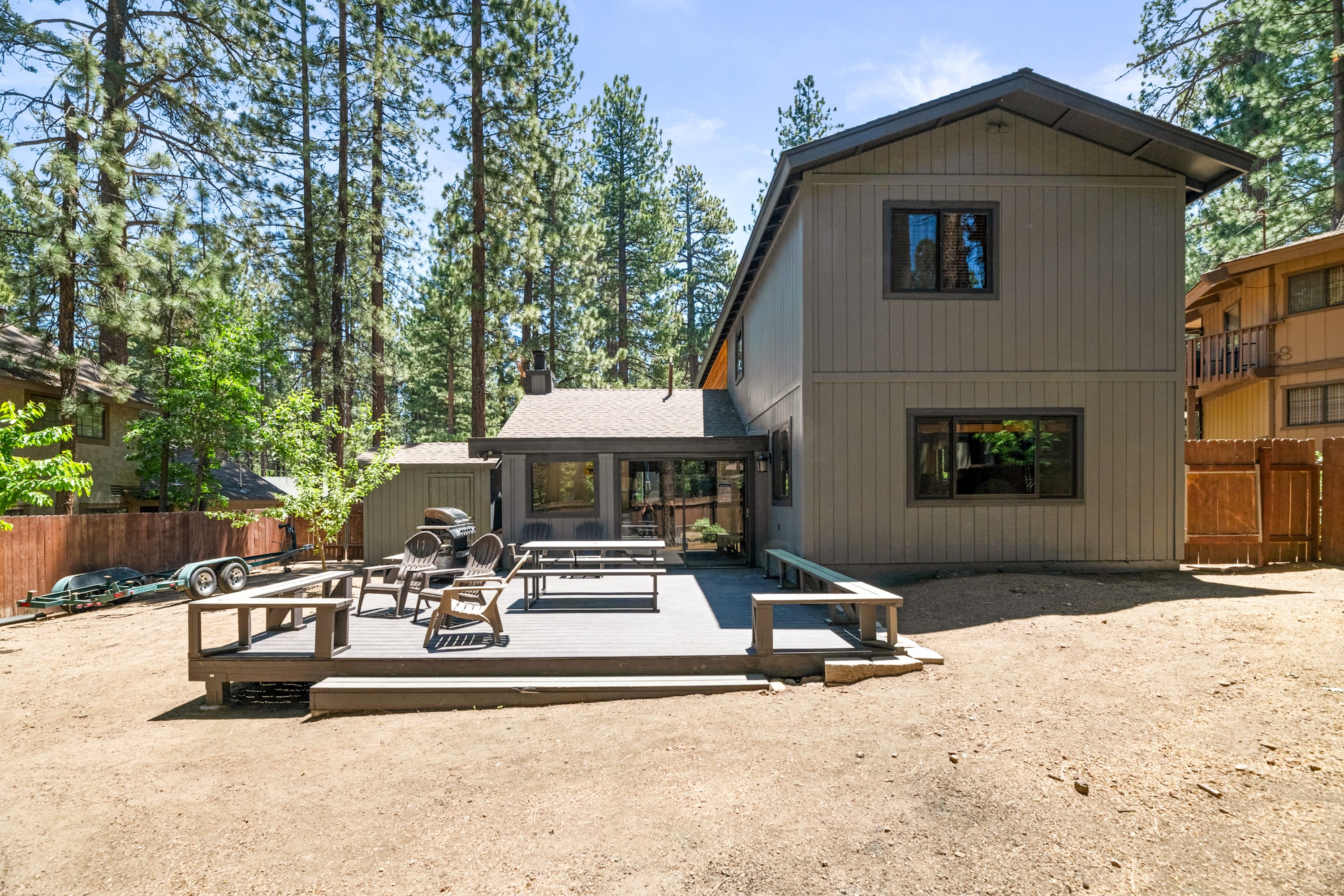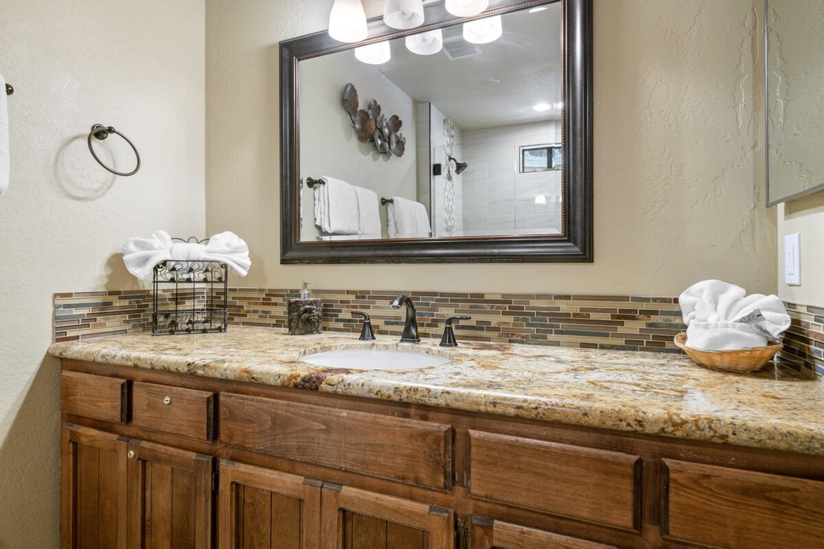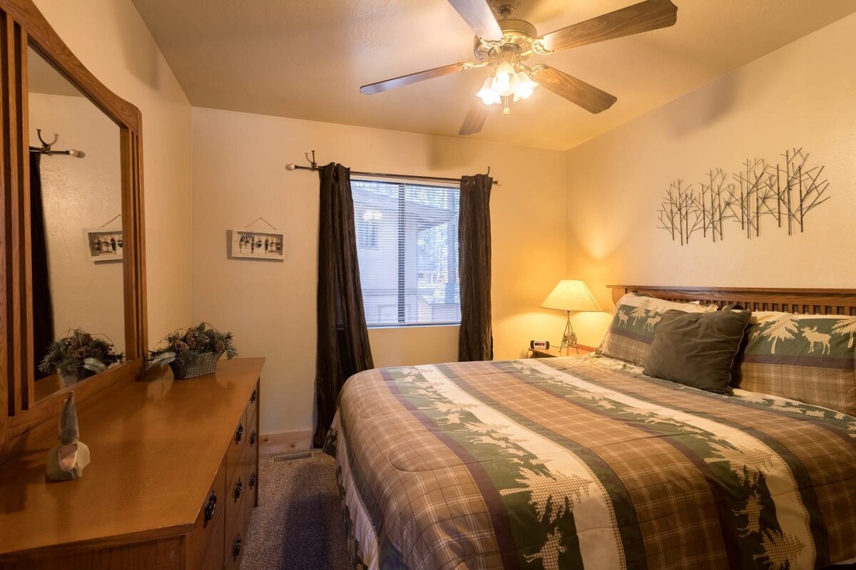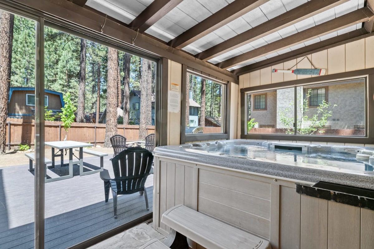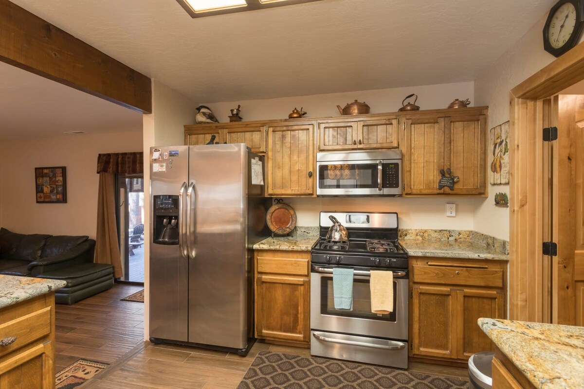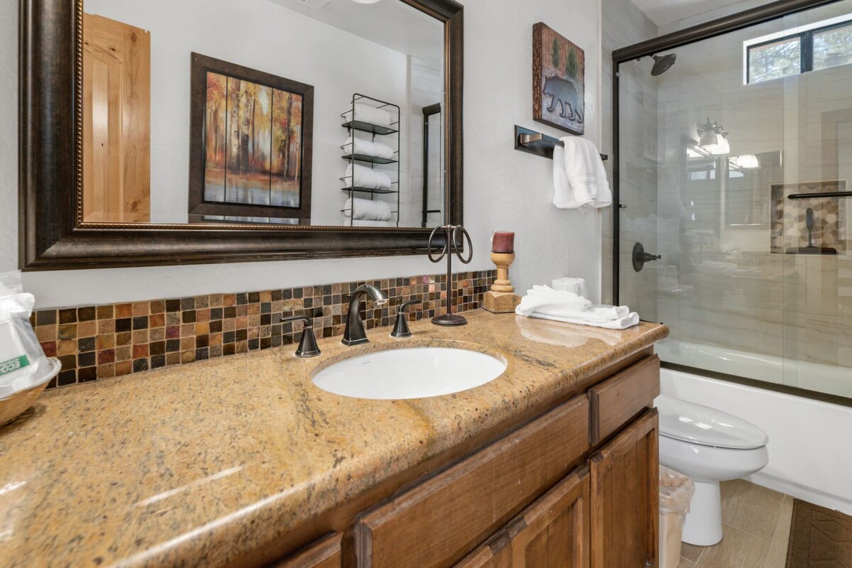 You're just steps away from Snow Summit, eliminating parking and transportation worries. With 3 spacious bedrooms containing a total of 6 beds and 3 beautiful bathrooms, this cabin is ideal for families or groups of friends. Cozy up by the wood-burning fireplace, or unwind in the private indoor spa after a day of activities. The fenced backyard with a BBQ is the perfect spot to enjoy the outdoors and savor delicious meals.