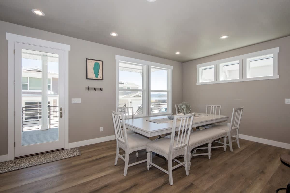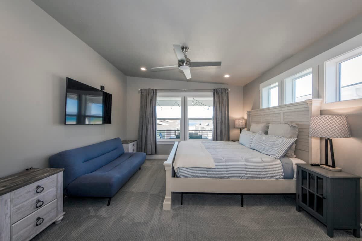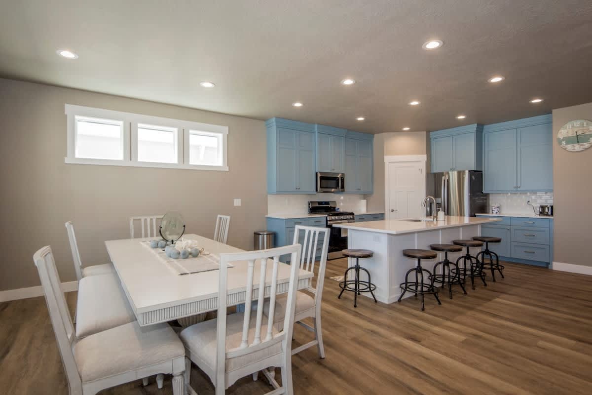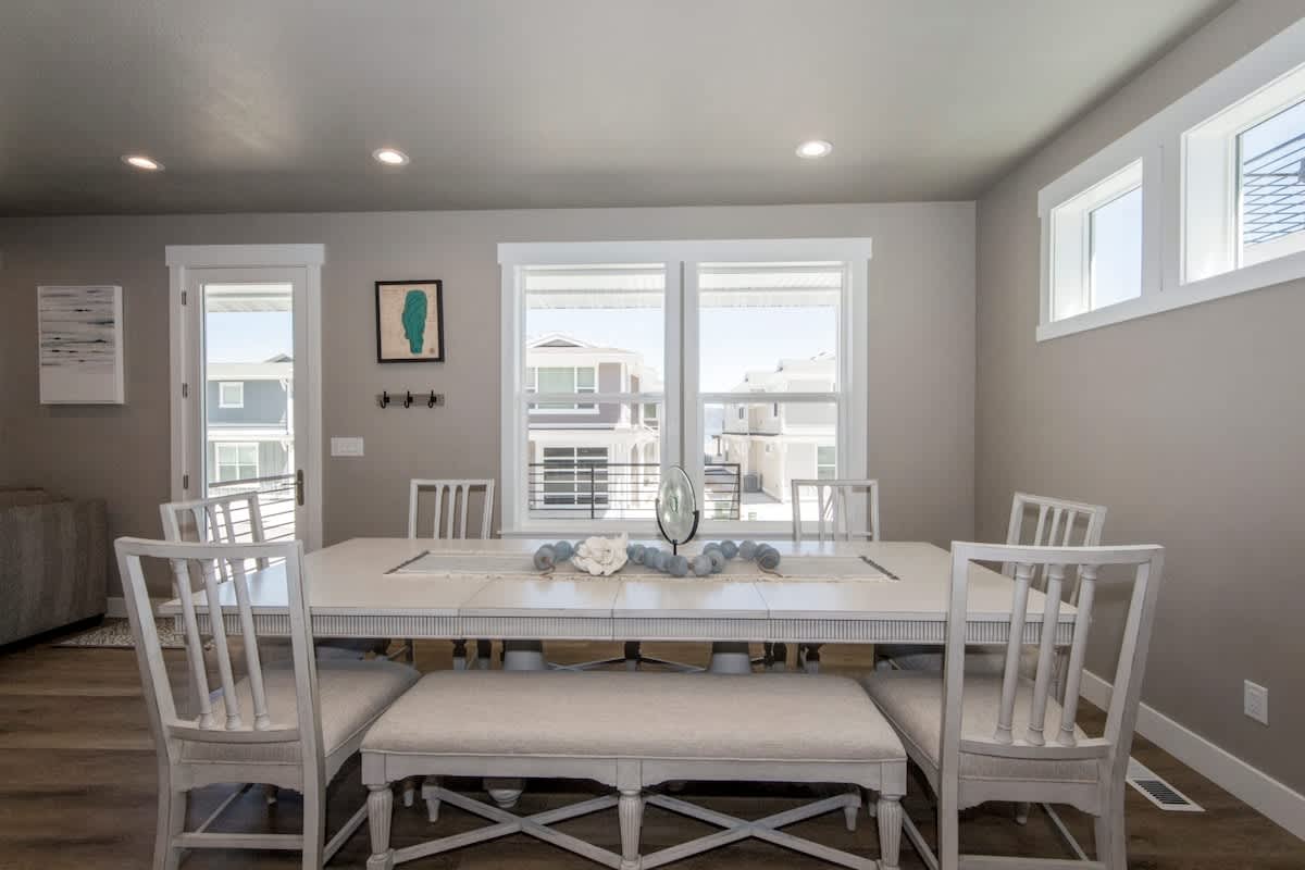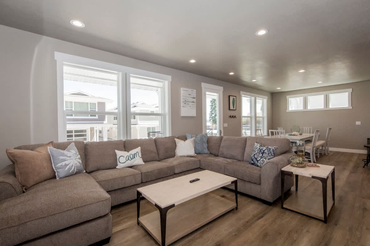 Amenities and Features: Private gated community Access to clubhouse amenities, (seasonal) outdoor pool, (year-round) hot tub, and Gym 5 Smart TV’s WIFI Fully equipped kitchen (dishes, cookware, stove, microwave, fridge, dishwasher) Seating for 12 around the dining table and an additional 5 at the bar Washer and dryer BBQ Beds and linens for standard occupancy Towels provided for max occupancy (please bring own pool and beach towels) Large gathering area in family room Walking distance to town