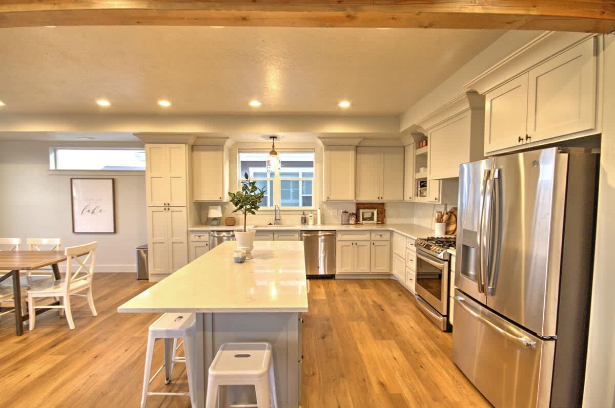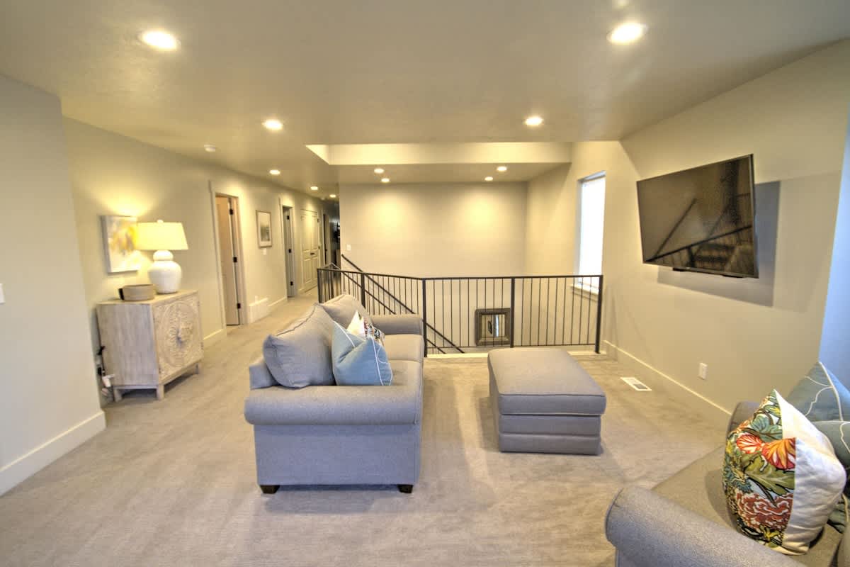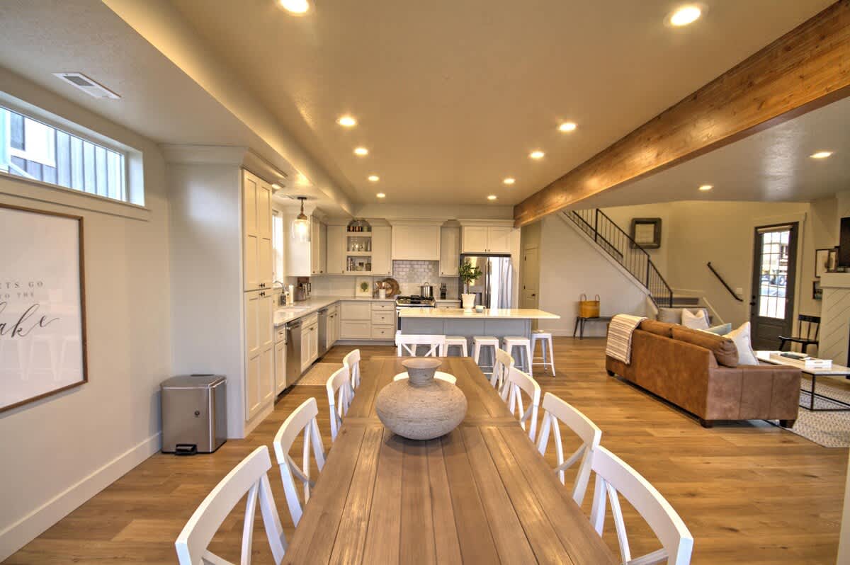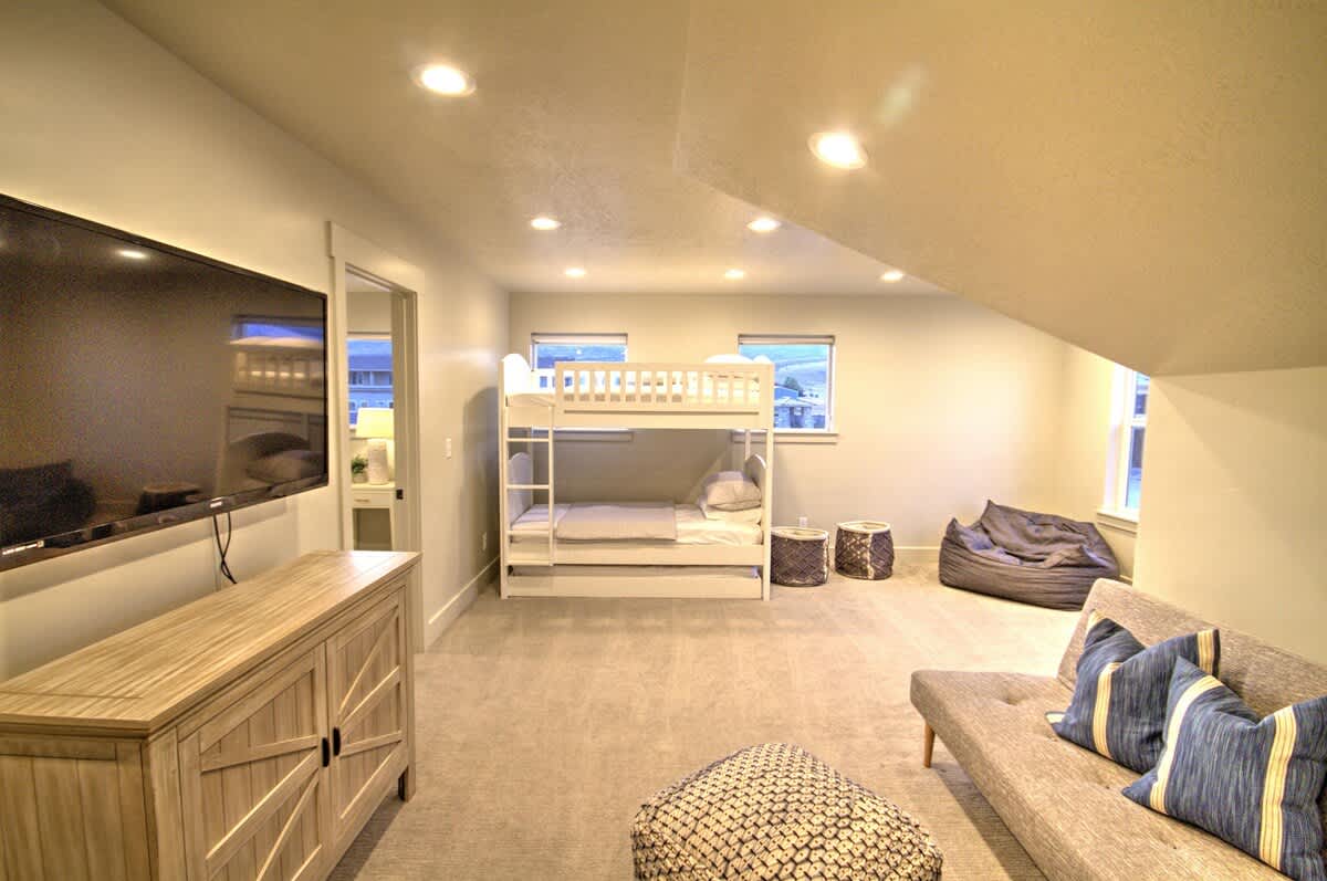Sleeps 20 people (24 max) Parking for 3 vehicles at the property and 2 more in overflow parking 6 bedrooms, 6 bathrooms, 2 levels 3600 square feet