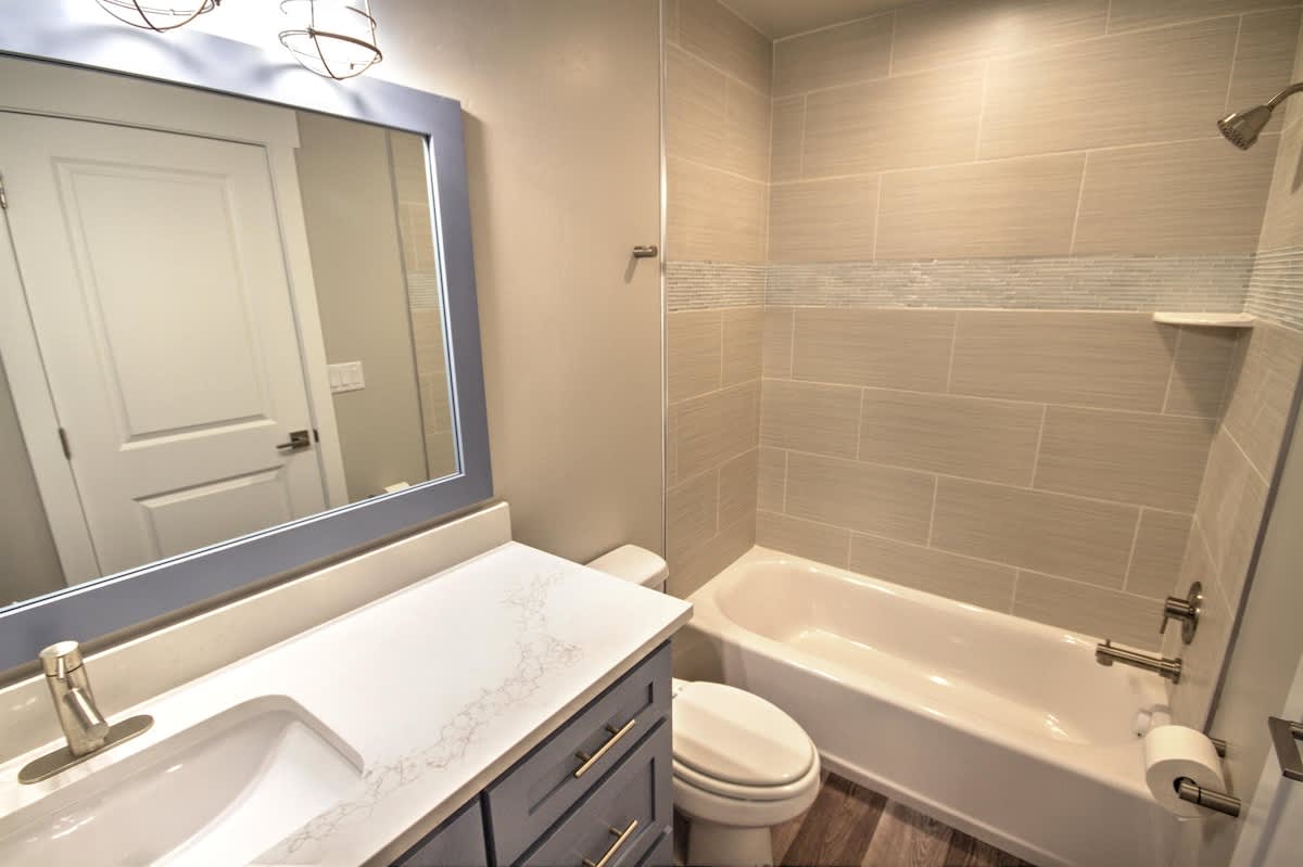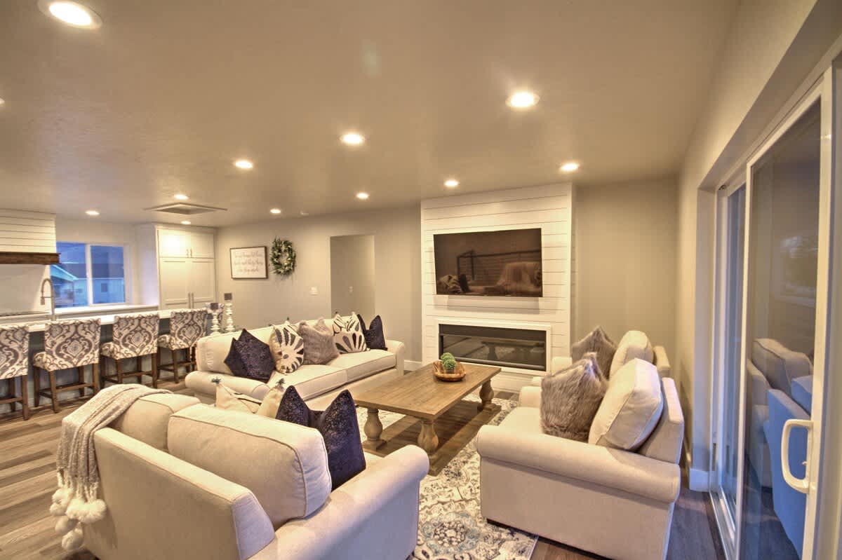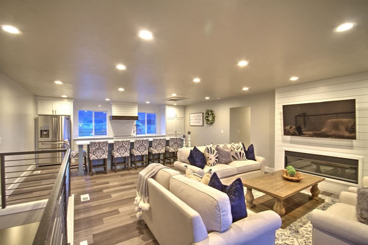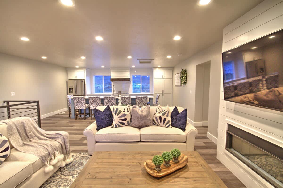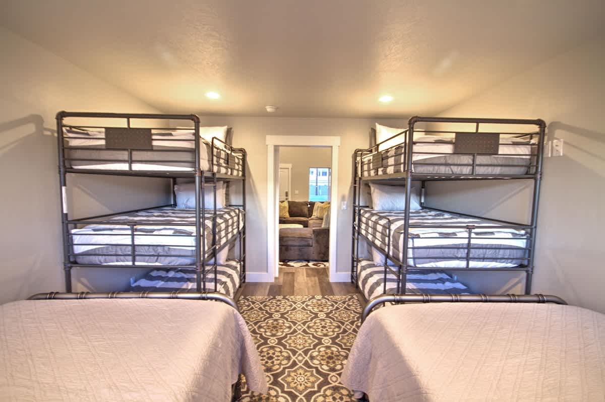 Sleeps 14 people (16 max) Parking for up to 4 vehicles 4 bedrooms, 3 bathrooms, 2 levels 2025 square feet