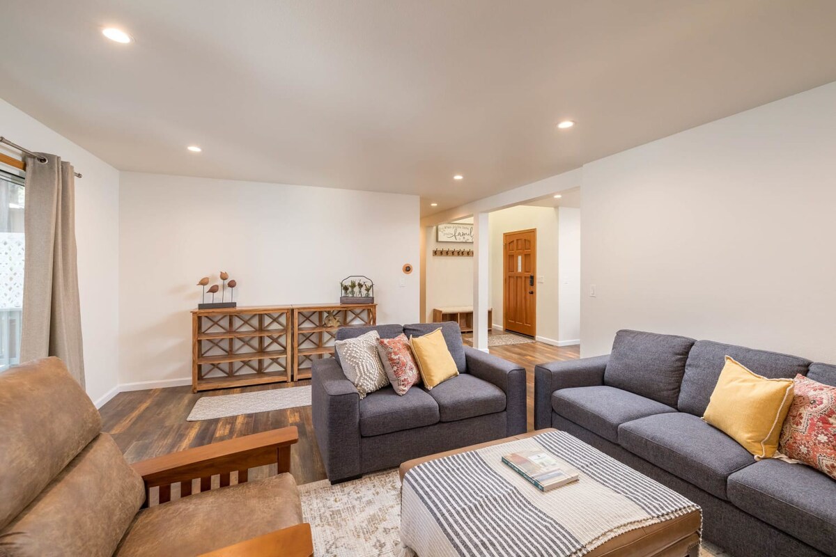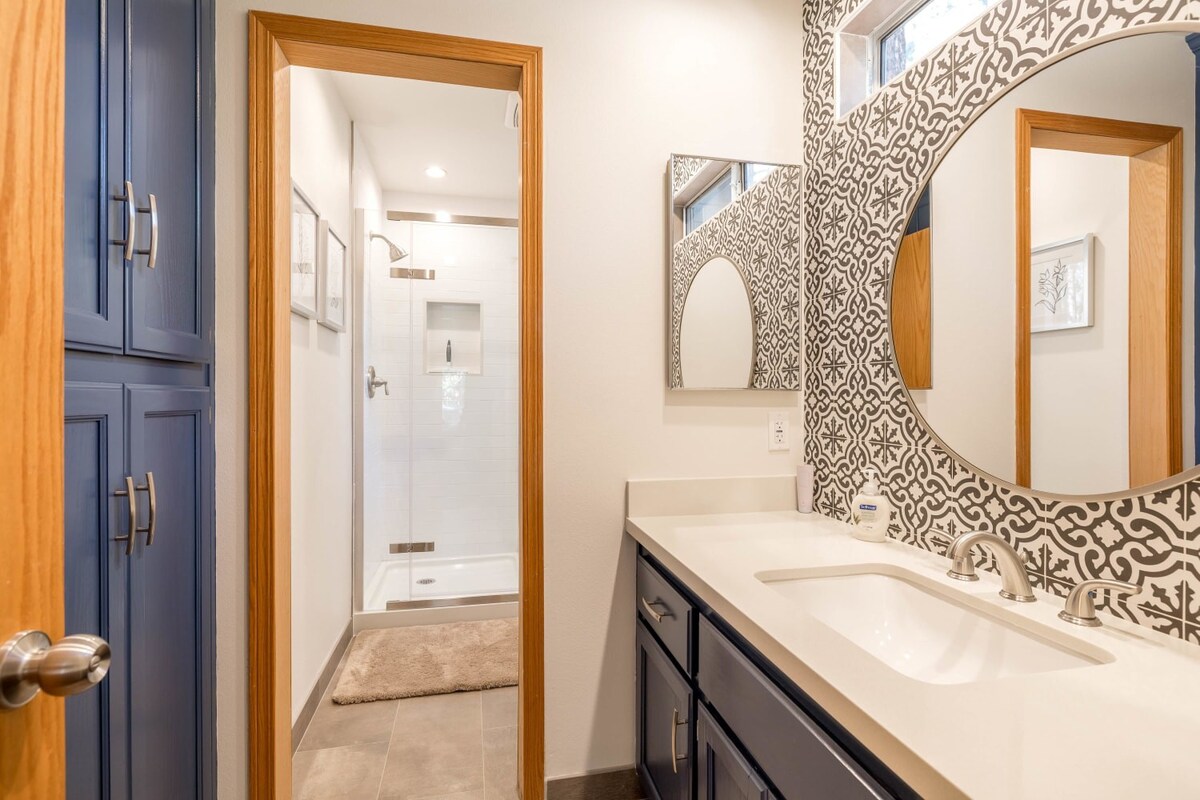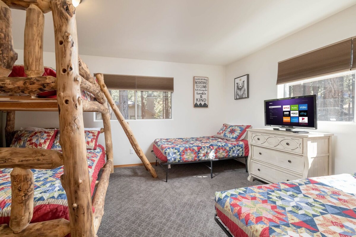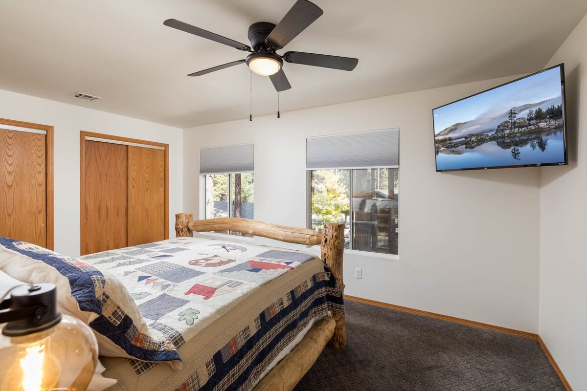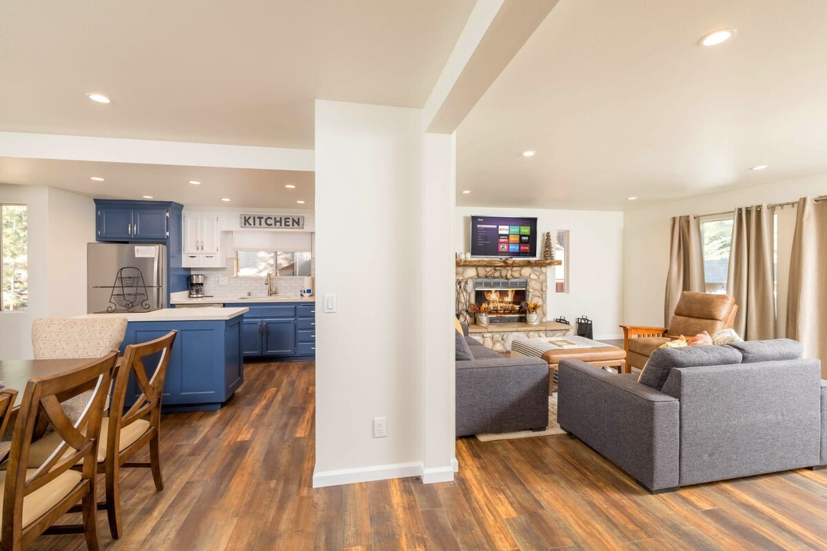 Discover this stunning, newly updated cabin on a tranquil street, mere steps from the renowned Snow Summit Resort. With three spacious bedrooms and three full bathrooms, it offers ample space for relaxation. Enjoy a fully equipped open kitchen with quartz counters and a glass tile backsplash, an inviting dining and living area, and a connected deck for savoring the relaxing spa and using the BBQ grill. Your perfect mountain getaway awaits!