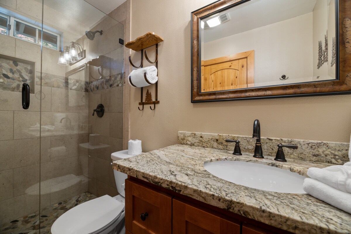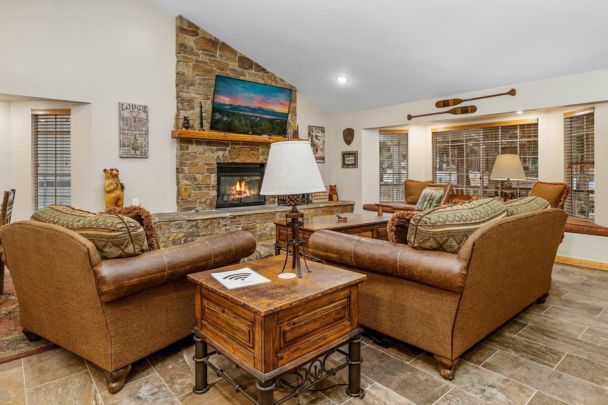 Fantastic place to stay in Big Bear! Only steps away from Snow Summit Resort, so you won't have to worry about parking or fees. The cabin is beautifully designed and remodeled, with 3 bedrooms and 3 sparkling bathrooms, and is equipped with 9 comfortable beds. The romantic fireplace and LED hot tub are great features to help you relax after a long day of activities.